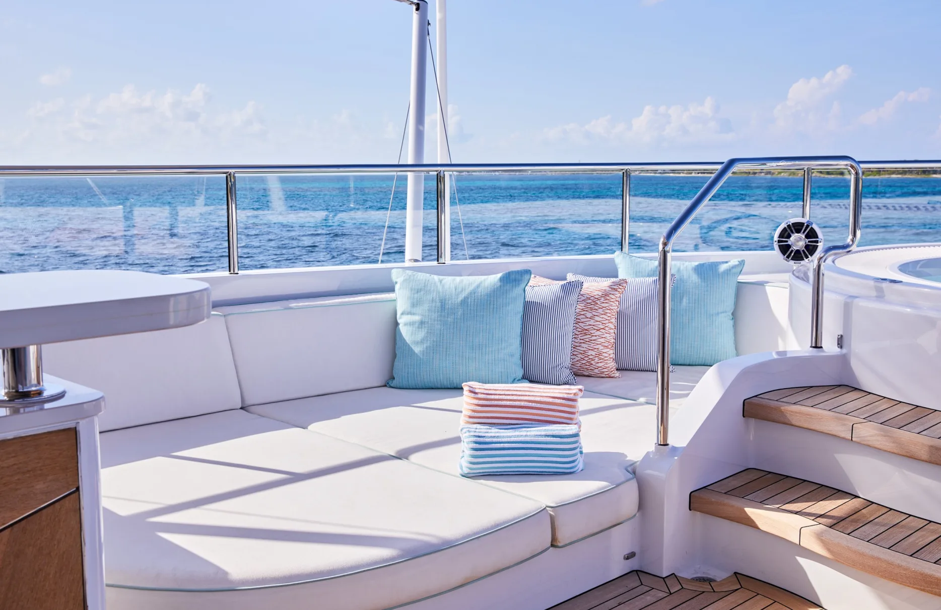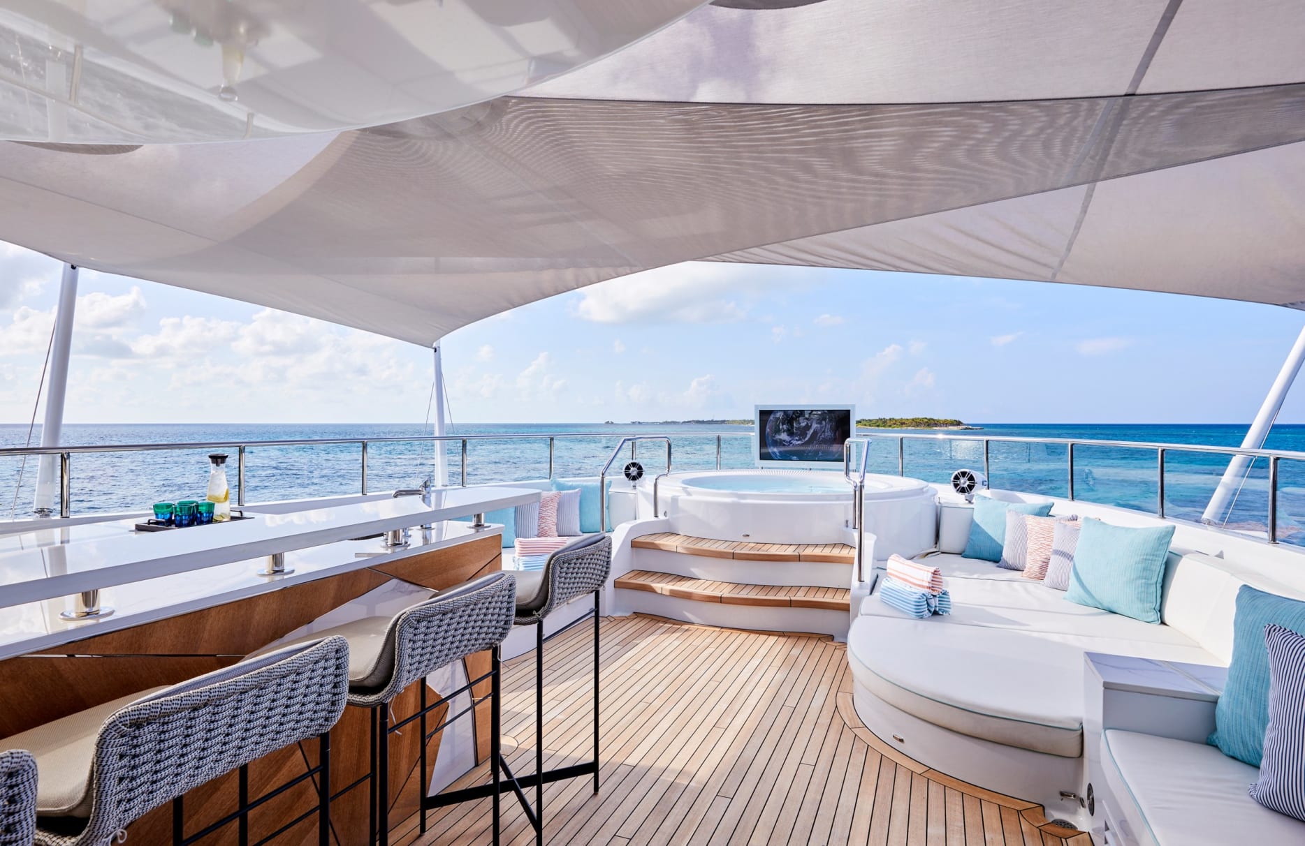 On Arkadia, each day begins with the promise of indulgence and ends with the serenity of the sea. Start your morning with a workout in the state-of-the-art gym, or perhaps a refreshing dip in the deck jacuzzi as you watch the sun rise over the horizon. As the day unfolds, unwind in the sauna or relax at the beach club, where the gentle sound of the ocean soothes your senses. As evening falls, gather with friends at the outdoor bar on the sun deck, where the day’s adventures are recounted under a blanket of stars. Throughout your journey, seamless connectivity via Wi-Fi and the perfect climate maintained by the air conditioning ensure comfort and connection, no matter where your voyage takes you.