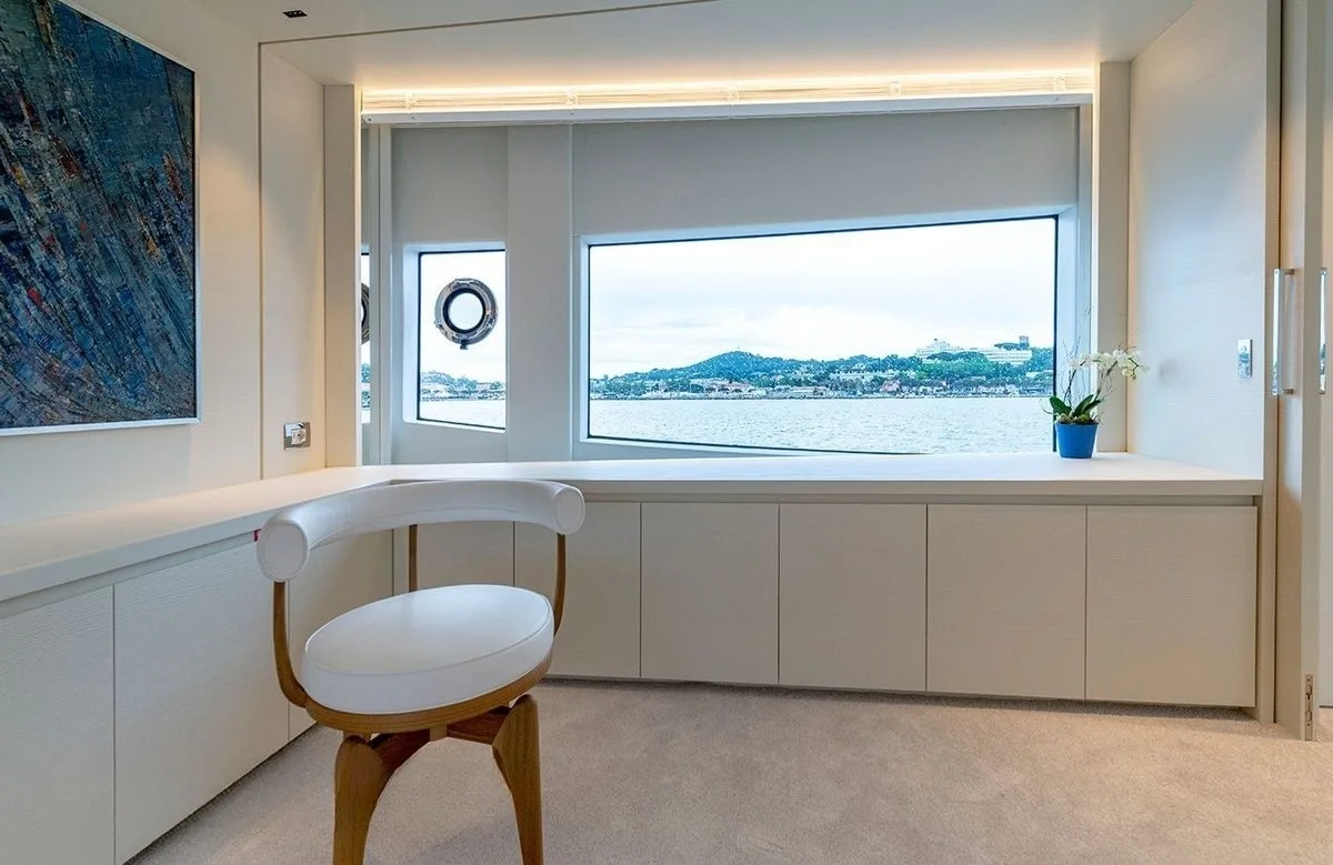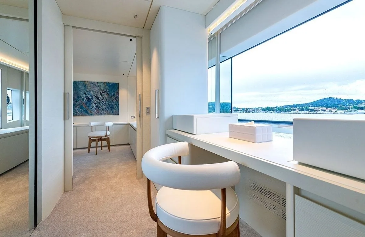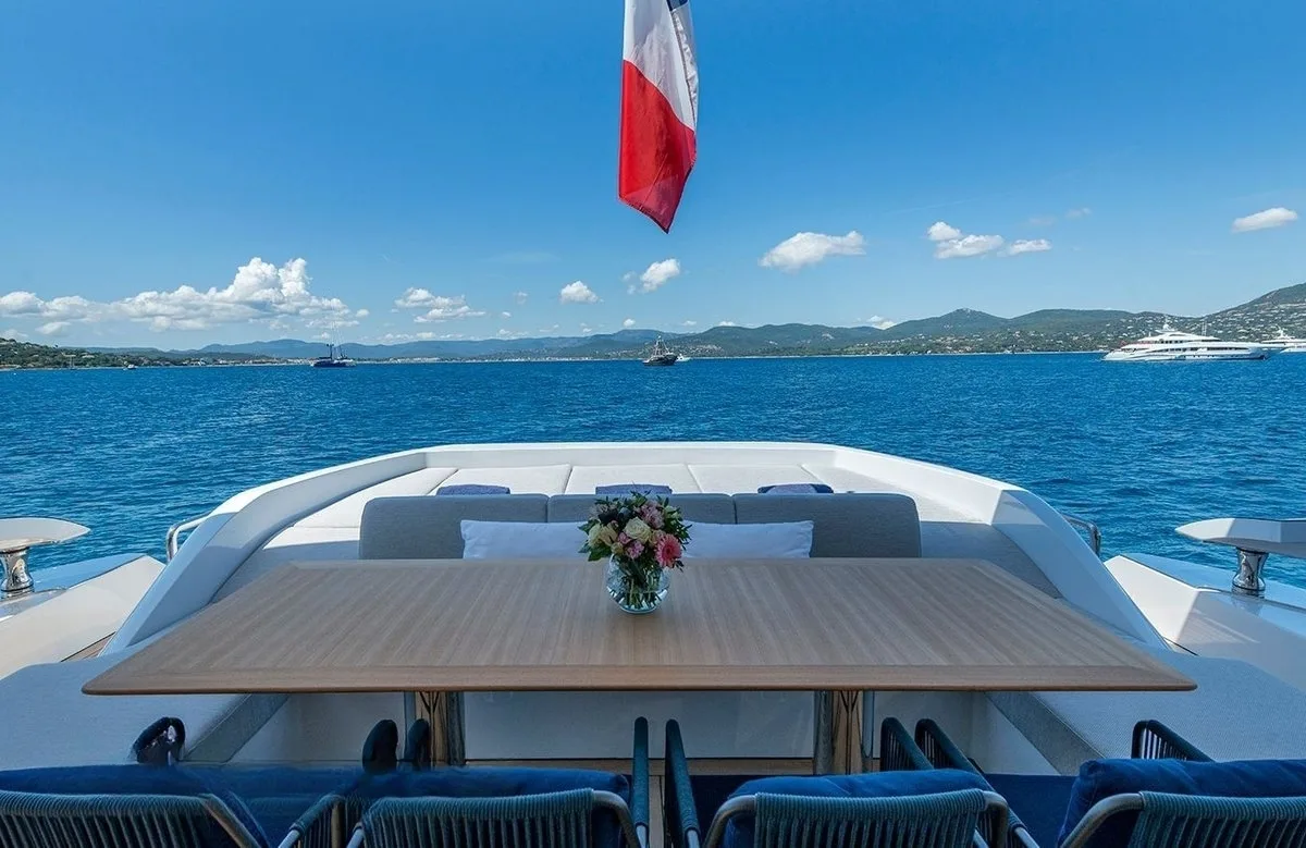 Life aboard Arsana is a symphony of relaxation and entertainment. Enjoy a soothing dip in the deck jacuzzi as the sun sets over the horizon or lounge on sunpads with your favorite drink from the outdoor bar. The yacht’s air conditioning system ensures a perfect climate, allowing you to unwind in any weather. Embrace the connection to the world with seamless Wi-Fi access, and let the tender garage facilitate effortless transitions between your sea and shore adventures.