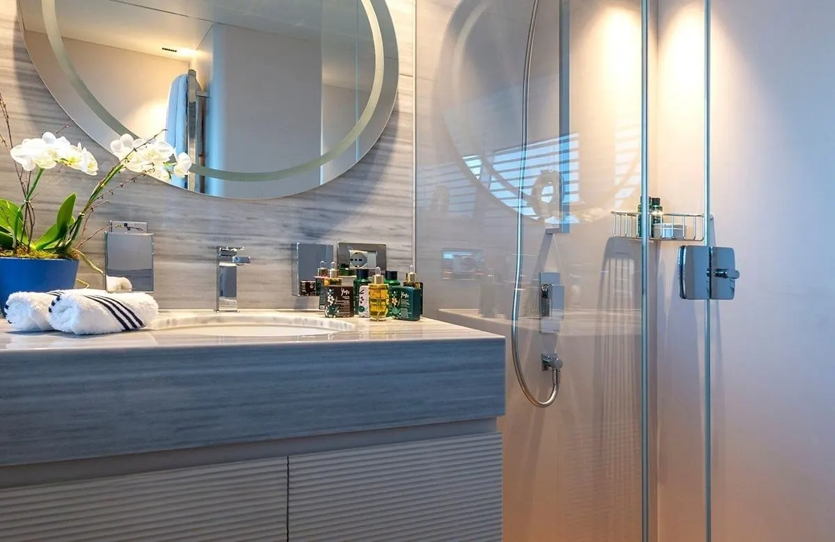 Accommodations on Arsana are a sanctuary of comfort and style for up to ten guests. The master suite offers a haven of tranquility, while the VIP and double cabins provide a refined retreat after a day of exploration. Two additional cabins can be arranged as either twins or doubles, ensuring flexibility and privacy for your party. Wake up to the gentle sway of the sea and the promise of another day in paradise, attended by a dedicated crew of six who ensure every detail exceeds your expectations.