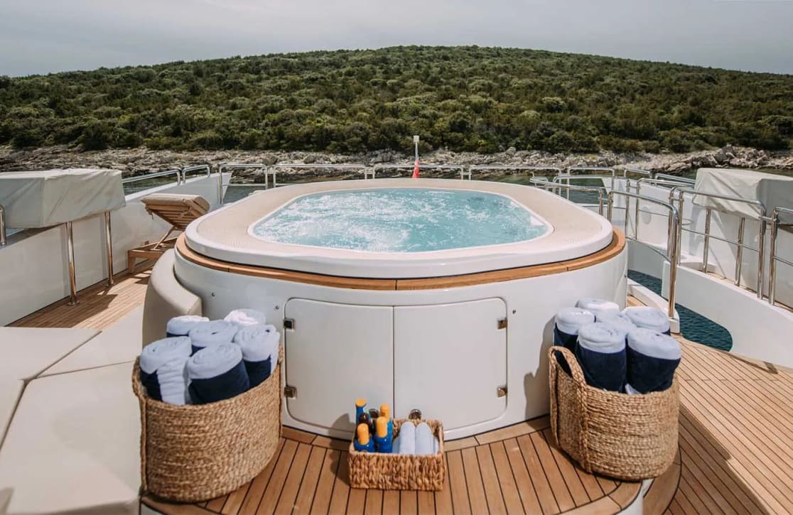 Onboard Artemy, every day is an invitation to relax and rejuvenate. Picture yourself savoring a meal prepared on the BBQ, the aroma mingling with the fresh sea air, as you dine al fresco beneath the stars. Sun-drenched afternoons can be spent on the expansive sunpads, while evenings draw you to the deck jacuzzi for a soothing soak. With the convenience of Wi-Fi and the comfort of air conditioning, Artemy ensures that every detail is crafted to enhance your stay. The yacht’s social spaces become your sanctuary, where laughter and stories fill the air as effortlessly as the horizon stretches before you.