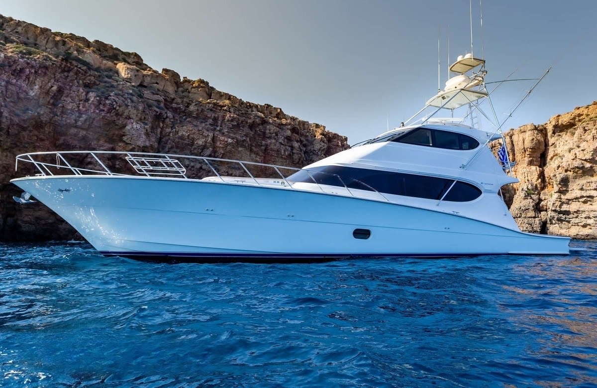 Embark on an extraordinary journey aboard the 23-meter Sport Fisher yacht ‘Astrape,’ a marvel crafted by the renowned American shipyard, Hatteras. This vessel invites you to experience the open sea with the perfect blend of adventure and relaxation. Picture yourself gliding through azure waters at a cruising speed of 22 knots, with the potential to reach an exhilarating 27 knots, as you explore hidden coves and vibrant harbors along the Mediterranean coastline. Astrape, built in 2008 and meticulously refitted in 2016, is designed to offer a first-class yacht charter experience for families and groups alike. With flexible accommodation for up to eight guests, every detail has been attended to, ensuring a seamless and unforgettable journey.