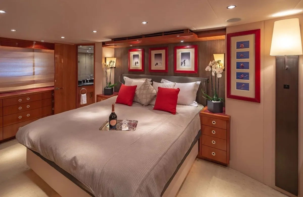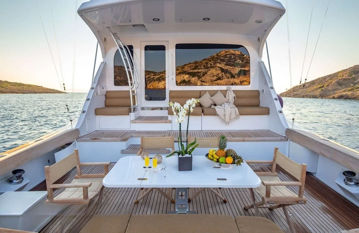 Astrape offers a serene retreat for up to eight guests across four beautifully appointed cabins. Each morning, awaken to the gentle lull of the sea in the master suite, two VIP cabins, or the twin cabin, where comfort meets elegance in every detail. The yacht’s layout provides an intimate yet spacious atmosphere, perfect for both family gatherings and quiet moments of solitude. As the sun sets, gather with loved ones in the inviting spaces to share stories of the day’s adventures, enveloped by the warmth and impeccable service of the dedicated crew.