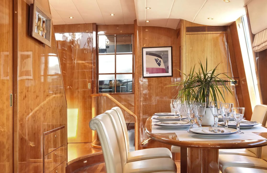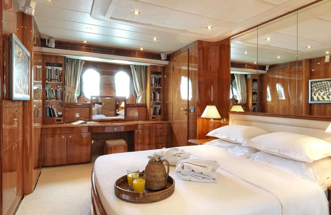 Atalanti accommodates up to 10 guests in four well-appointed cabins, ensuring a restful haven after days filled with adventure. The master suite offers a spacious retreat, while a double cabin and two twin cabins, each with pullman beds, provide versatile sleeping arrangements for family and friends. Awaken to the gentle sway of the sea and the promise of a new day, where the elegance of your surroundings mirrors the beauty of the seascape beyond.
