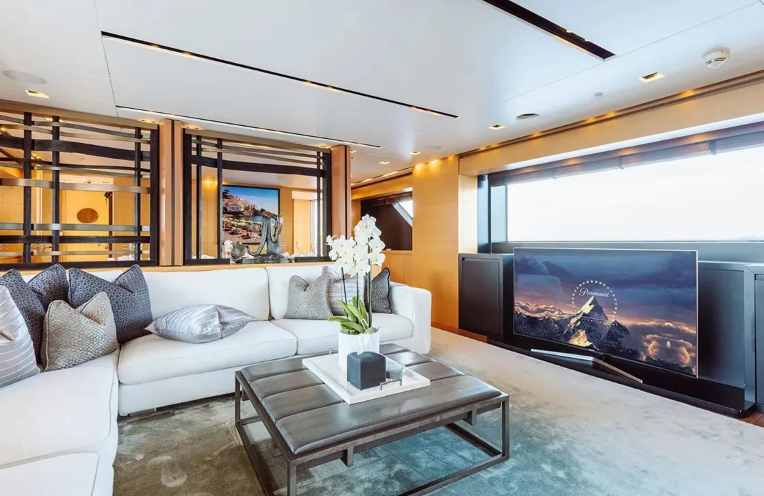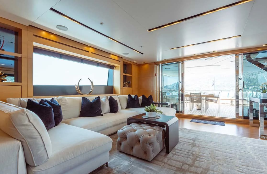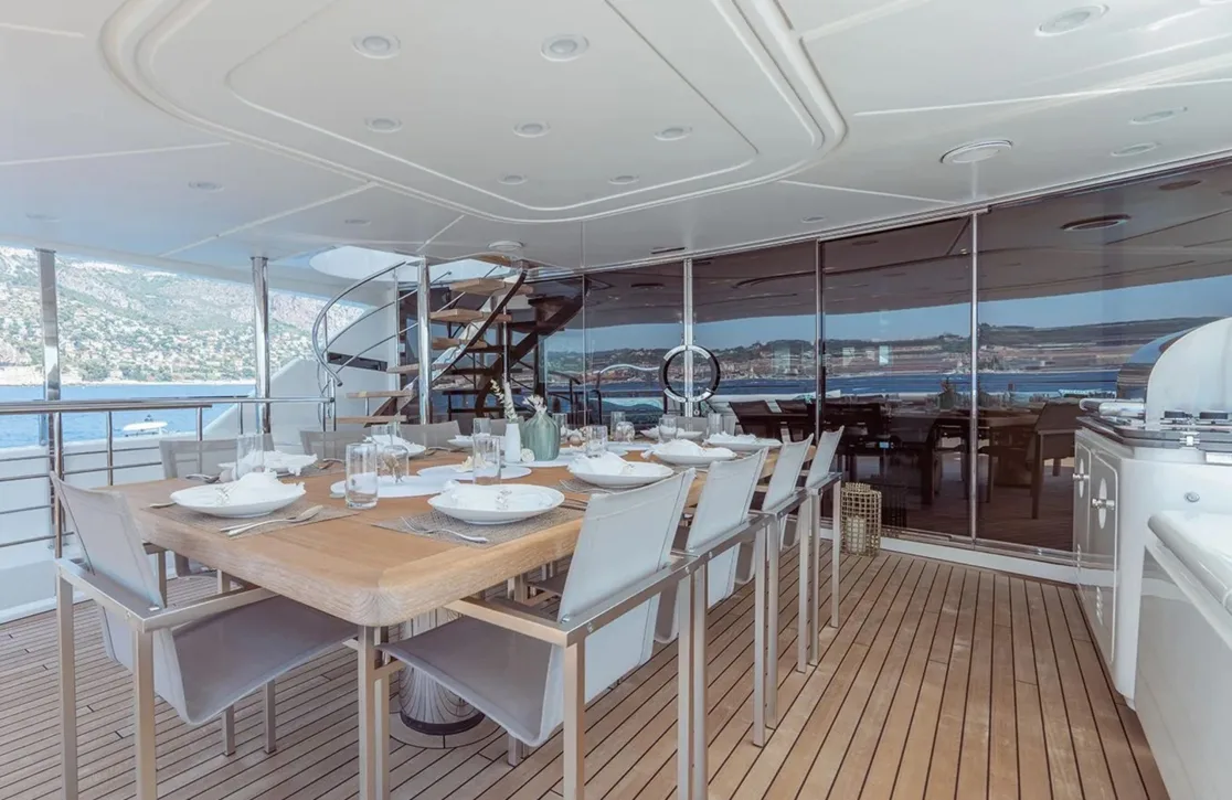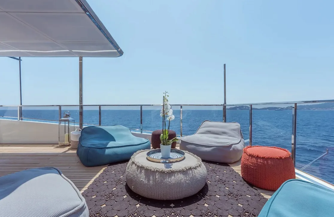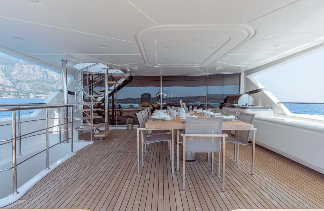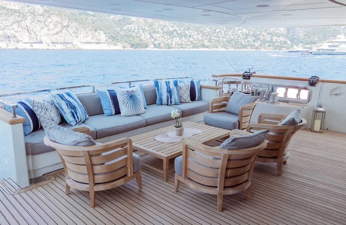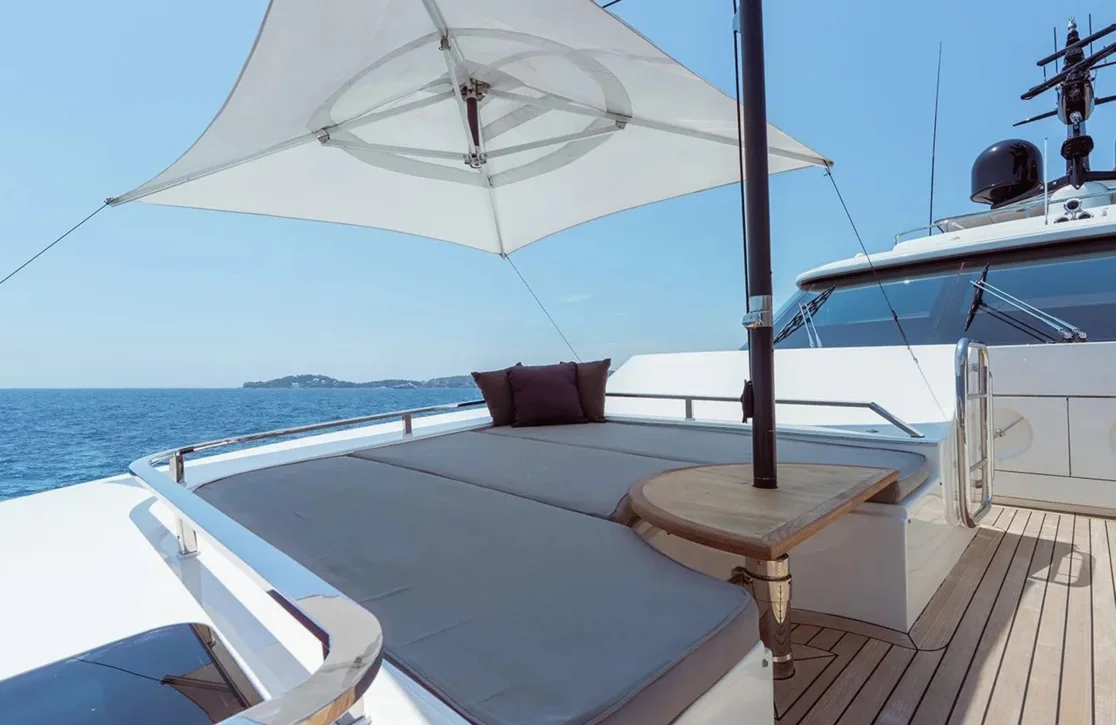 Aboard Away, each moment is a celebration of leisure and comfort. Indulge in the scenic beauty from the deck jacuzzi, where panoramic views are best enjoyed with a refreshing drink in hand, while the sun sets on another perfect day. The yacht’s climate-controlled interiors offer a haven of tranquility, ensuring your utmost relaxation as you sail. Equipped with a Portuguese bridge and sunpads, the sun deck becomes your personal retreat whether you seek quiet solitude or lively conversation. Culinary delights are enhanced with an exterior bar and BBQ, perfect for alfresco dining under the stars, all while staying seamlessly connected with Wi-Fi throughout your journey.