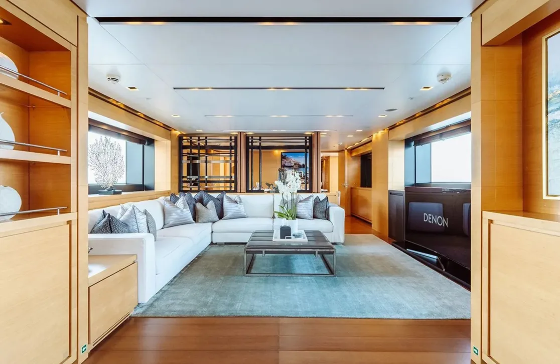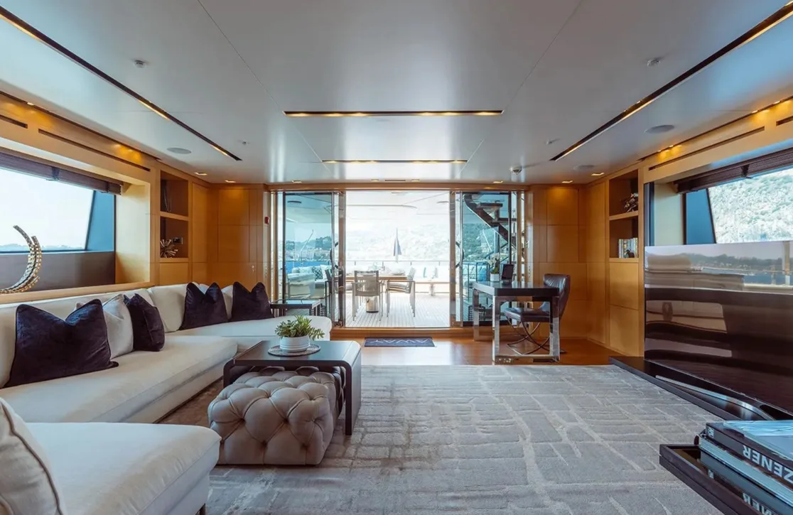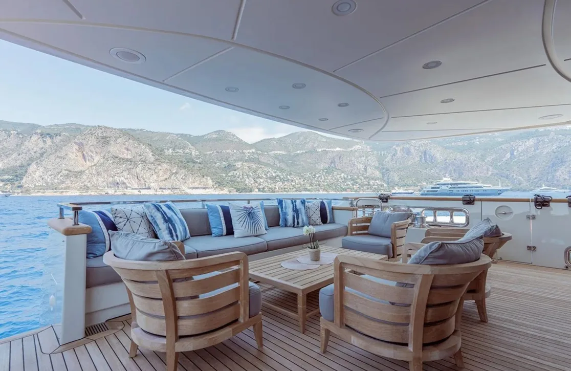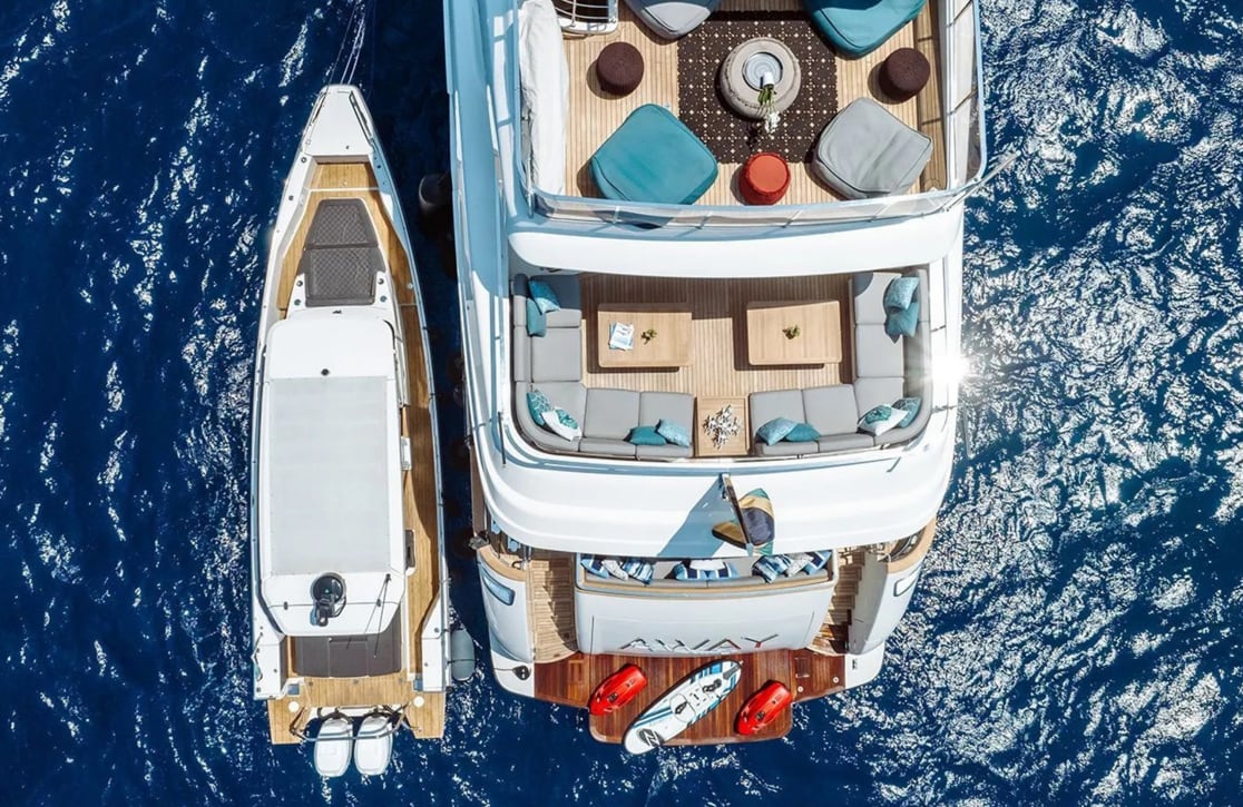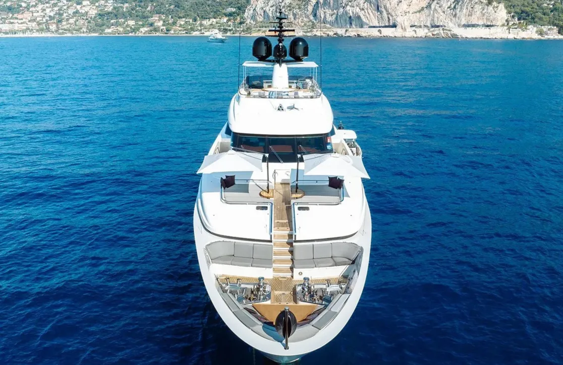 Step into a world of refined elegance aboard the motor yacht Away, a striking 37-meter marvel crafted by the esteemed Italian shipyard Sanlorenzo. Her design, a testament to the creative genius of Francesco Paszkowski, offers an exquisite blend of warmth and sophistication, inviting you to explore both the comfort of the yacht and the allure of the Mediterranean coastlines. As you glide effortlessly across open waters at a cruising speed of 12 knots, with the ability to reach speeds up to 17 knots, you are not just traveling, but experiencing the art of yachting. With a range extending to 3,455 nautical miles, Away offers unprecedented opportunities to discover hidden coves, vibrant harbors, and serene anchorages.