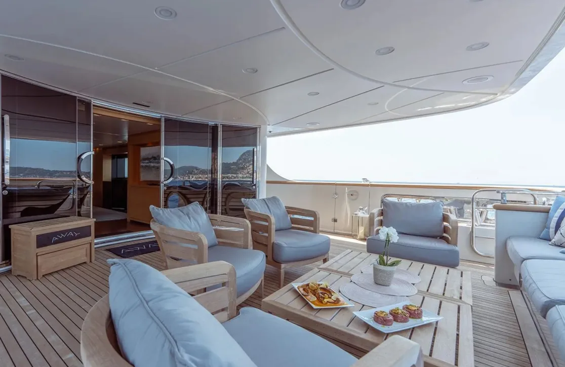 Step into a world of refined elegance aboard the motor yacht Away, a striking 37-meter marvel crafted by the esteemed Italian shipyard Sanlorenzo. Her design, a testament to the creative genius of Francesco Paszkowski, offers an exquisite blend of warmth and sophistication, inviting you to explore both the comfort of the yacht and the allure of the Mediterranean coastlines. As you glide effortlessly across open...