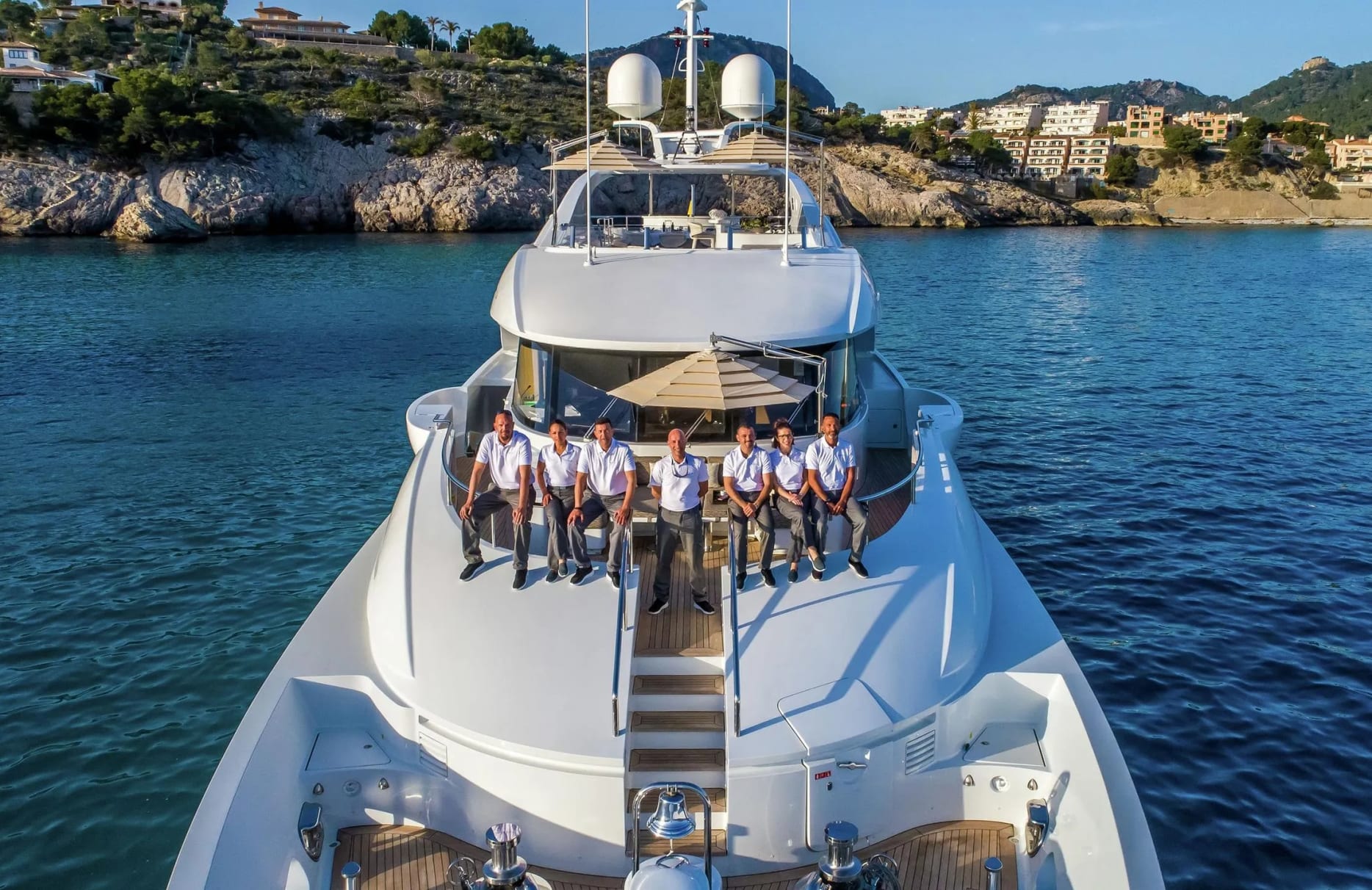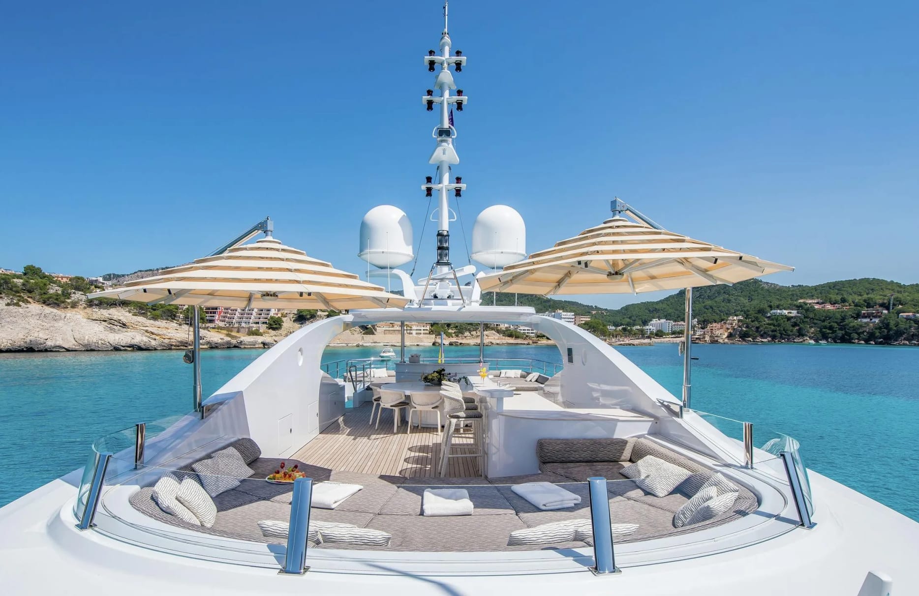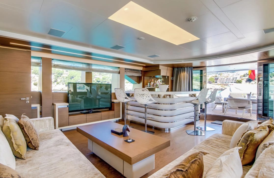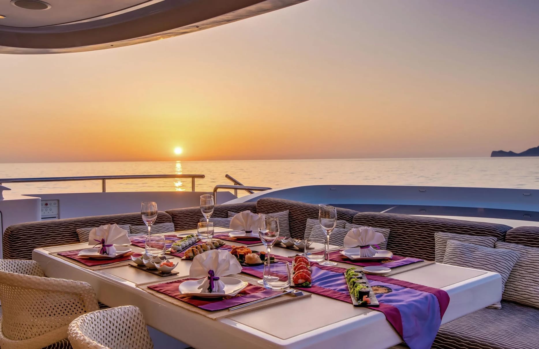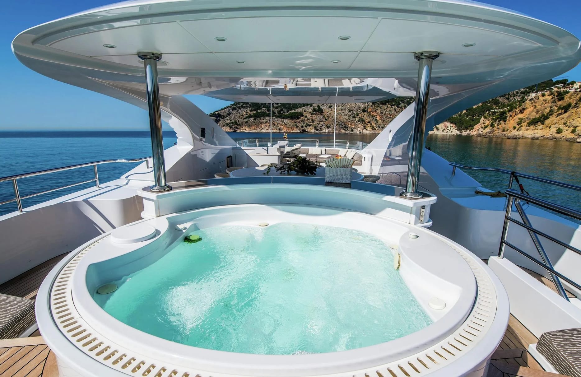 Aboard Aziza, every moment is designed to be savored. Whether you are lounging in the panoramic deck jacuzzi, maintaining your fitness regime in the state-of-the-art gym, or simply enjoying the seamless blend of indoor and outdoor living spaces, the yacht offers a perfect backdrop for relaxation and exploration. With a dedicated crew of seven ensuring your every need is met, Aziza becomes your personal gateway to a world of elegance and discovery.