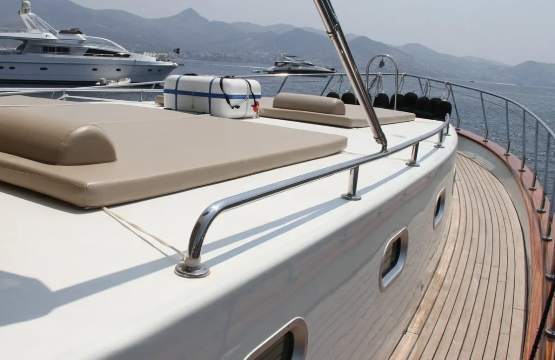 Accommodating up to eight guests within its four exquisitely appointed cabins, Babosch promises restful nights rocked gently by the sea. Each cabin is a sanctuary, offering a perfect blend of modern comforts and timeless elegance. Wake up to the sound of waves lapping against the hull, as natural light filters through the spacious interiors, inviting you to start another day of adventure and relaxation. The ambiance is tranquil, yet sophisticated, making your stay aboard as memorable as the destinations you visit.