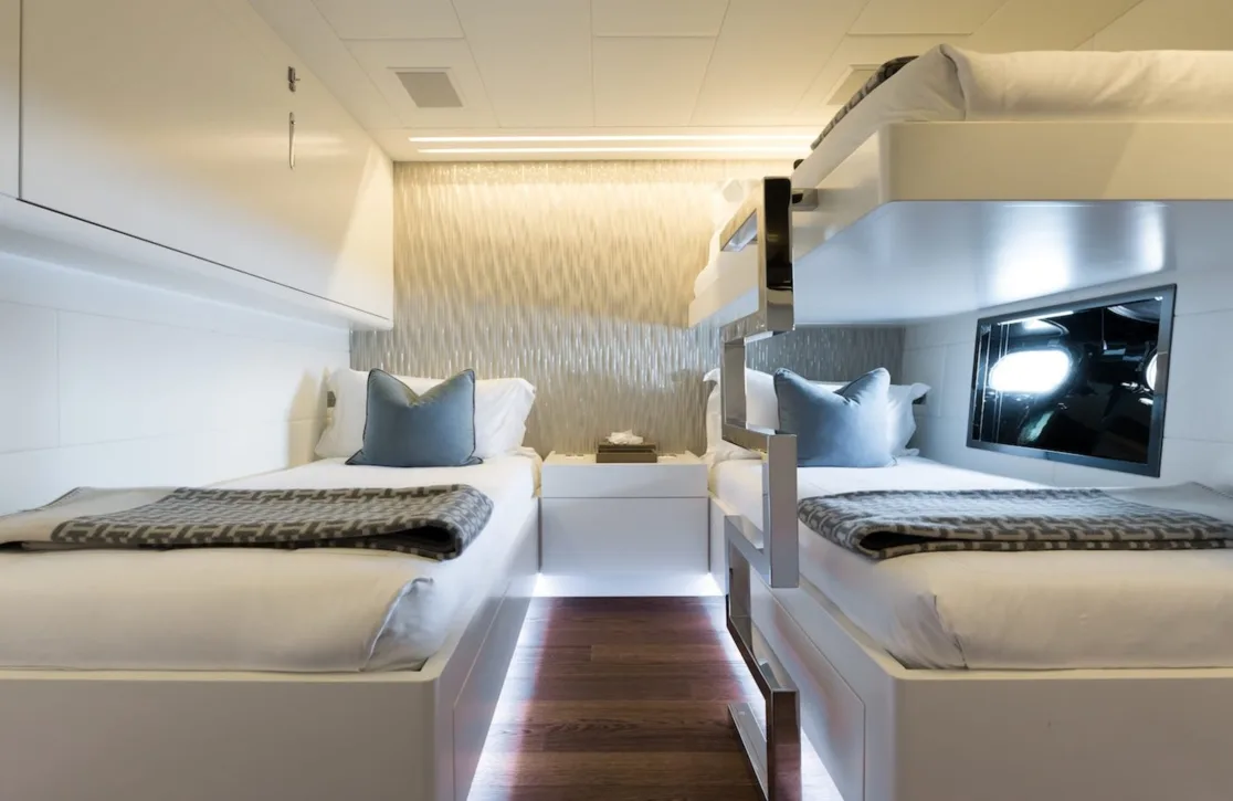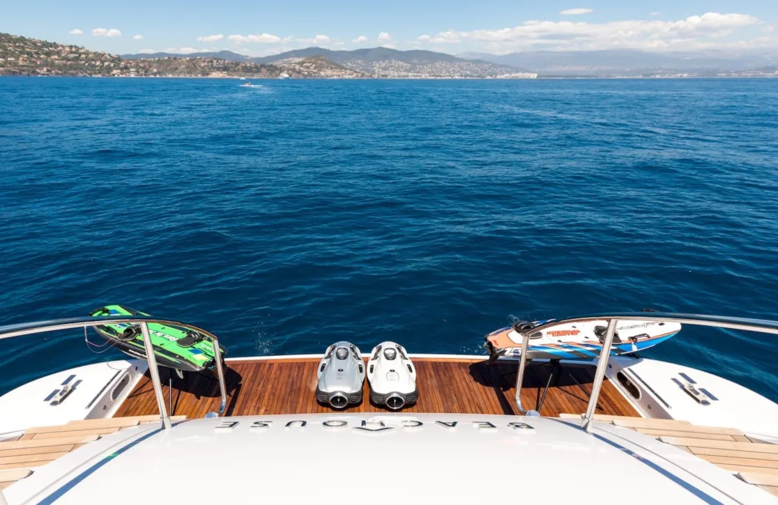 Accommodations aboard Beachouse are a reflection of refined comfort and versatility. With room for up to 10 guests, the yacht offers a master suite, a VIP cabin, a double cabin, and a twin cabin, each thoughtfully designed to provide a restful haven after a day of exploration. Imagine waking to the gentle lapping of waves, enveloped in sumptuous linens, with the promise of another day of adventure on the horizon. The family-friendly layout ensures that whether traveling with family or friends, everyone’s needs are met with grace and style, thanks to the attentive service provided by the six dedicated crew members.