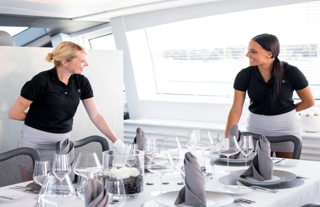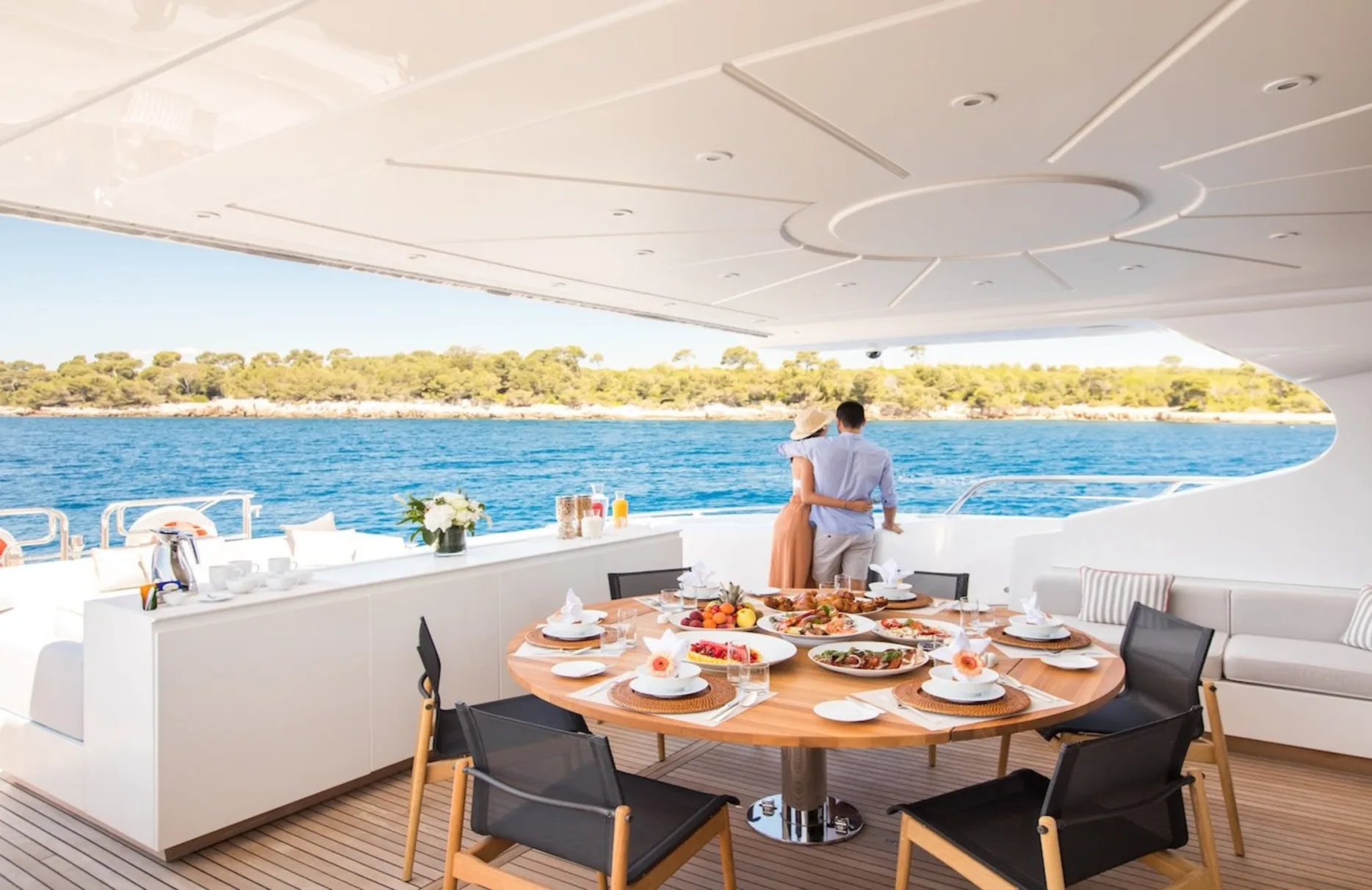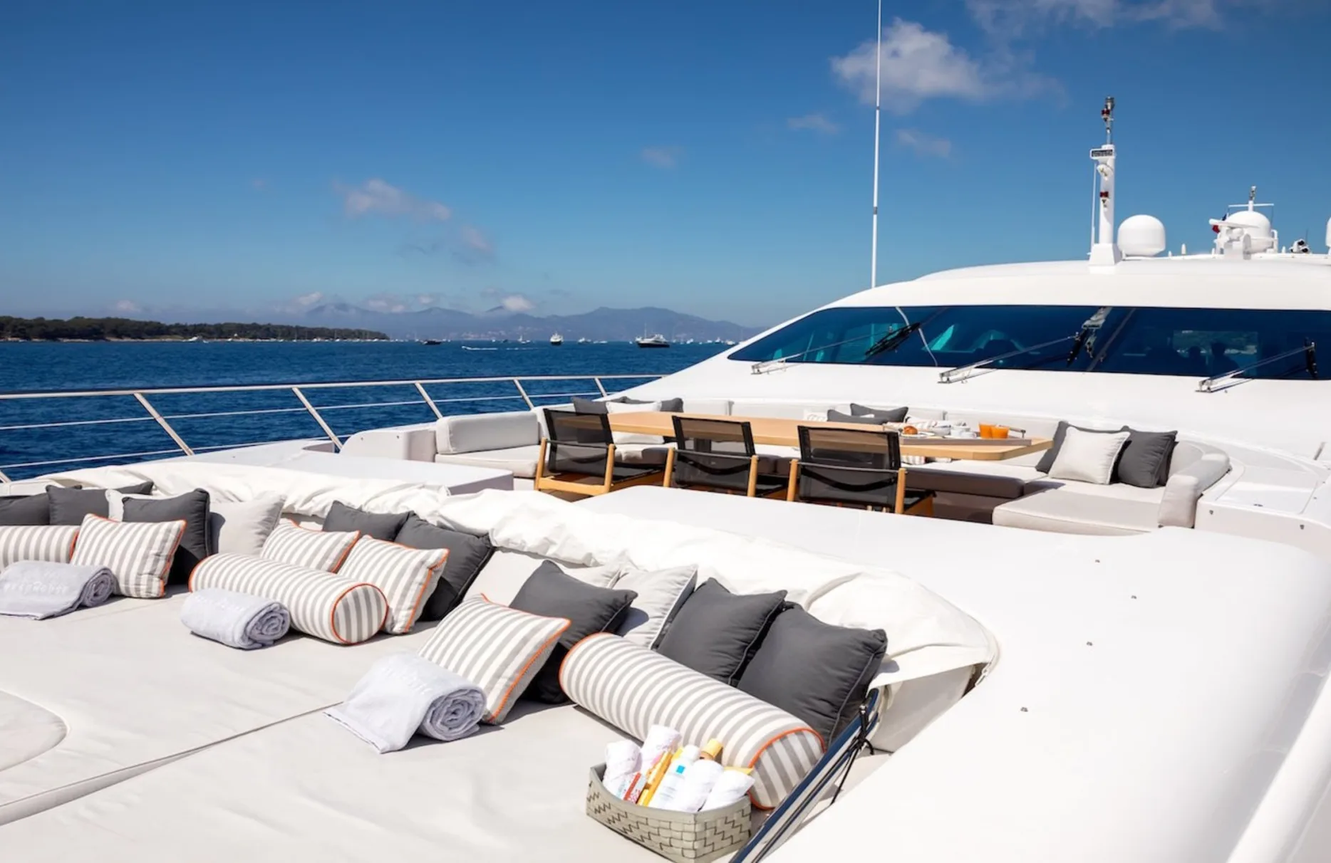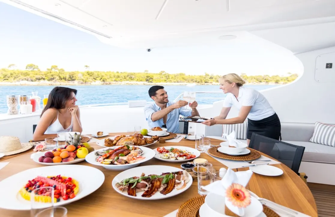 Onboard Beachouse, every detail is curated to elevate your experience. The open spaces and thoughtfully designed social areas offer a serene sanctuary where you can enjoy both intimate gatherings and vibrant celebrations. Feel the gentle sea breeze as you unwind on the foredeck seating with a table, perfect for alfresco dining or sunset cocktails. Retreat to the sun deck where sunpads invite you to soak up the sun, or engage in a revitalizing workout with the gym equipment available. Wi-Fi keeps you connected, while at-anchor and underway stabilizers ensure a smooth experience, letting you truly relax and enjoy the tranquility of your surroundings.