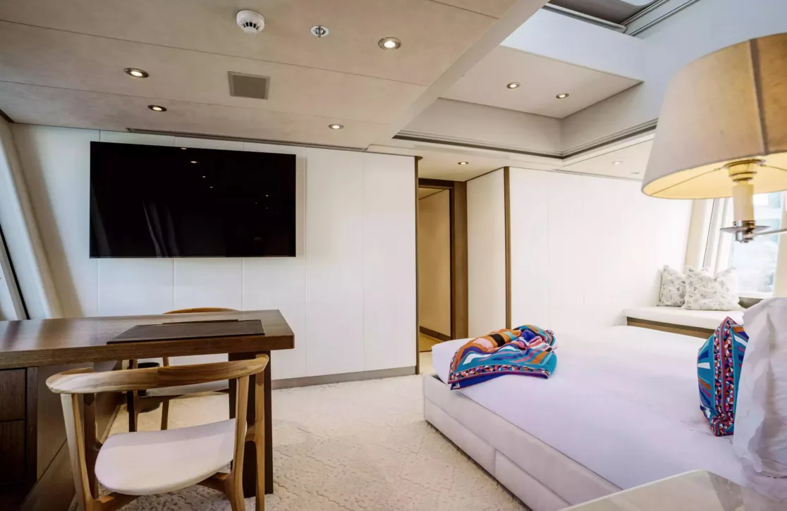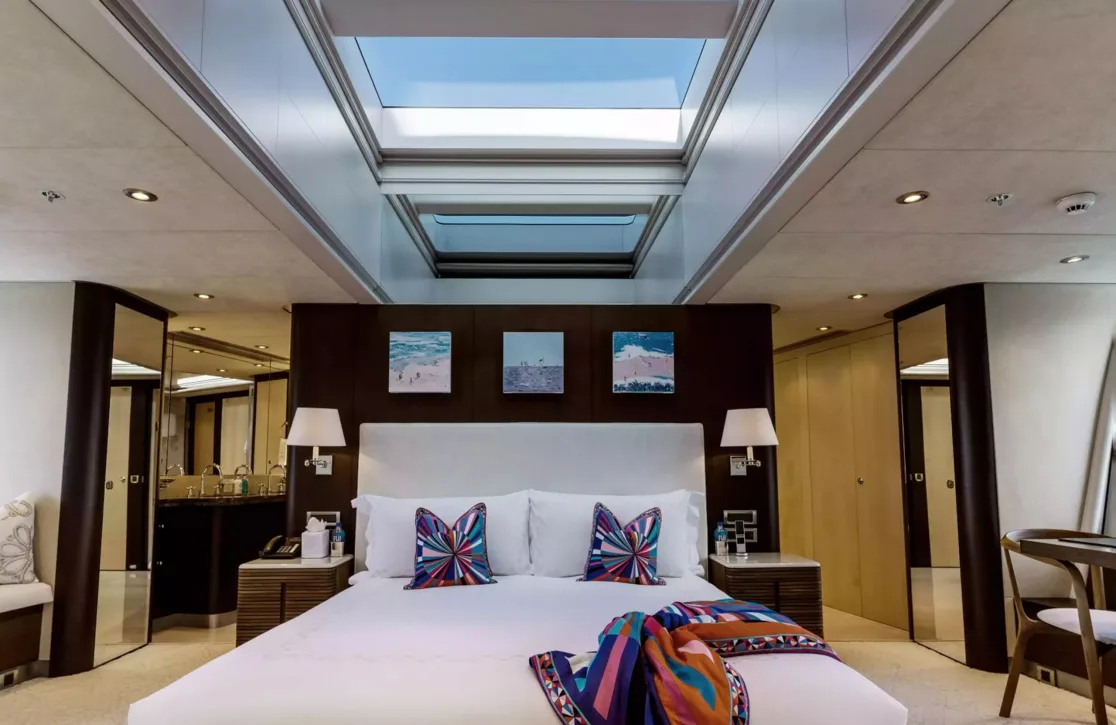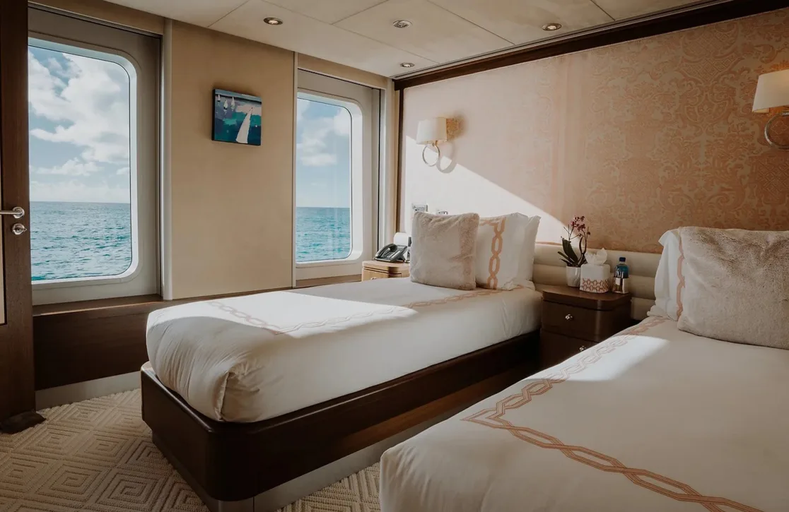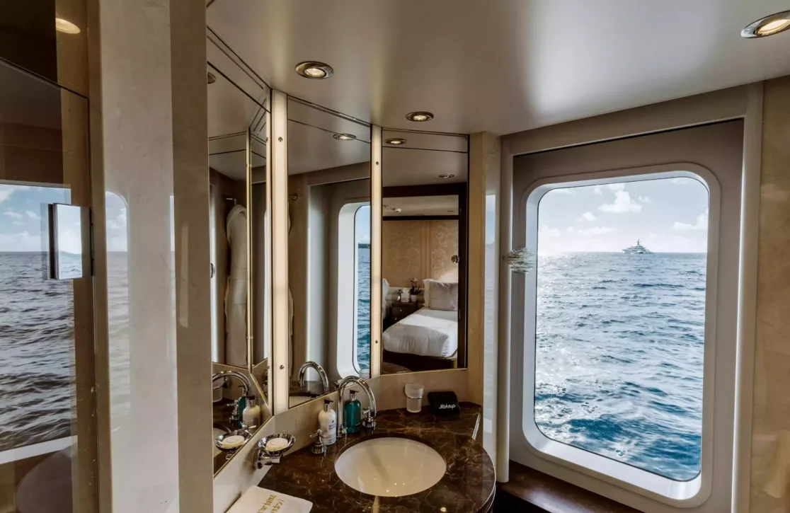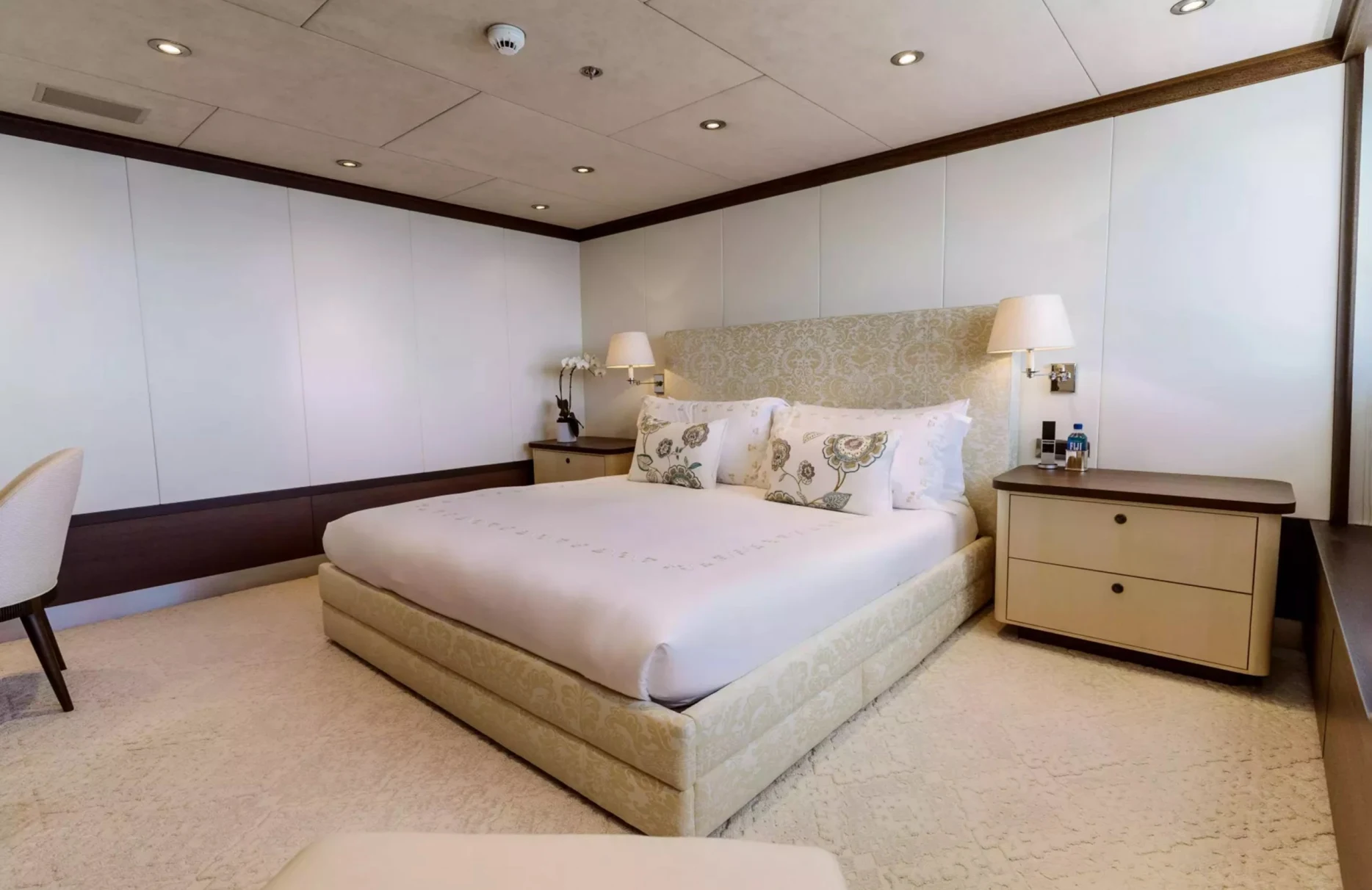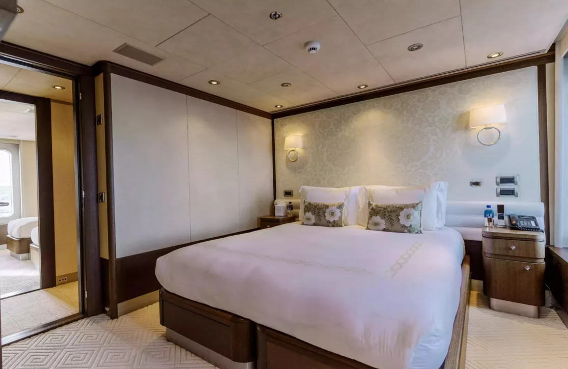 Bella offers an inviting sanctuary for up to 12 guests within her six beautifully appointed cabins. Begin your day wrapped in the comfort of a master suite, where sunlight dances through the windows, gently waking you. Two double and two twin cabins provide a serene retreat for family and friends, each echoing the yacht’s harmonious design. With a crew of nine dedicated to your every need, every moment aboard feels effortless and profound.