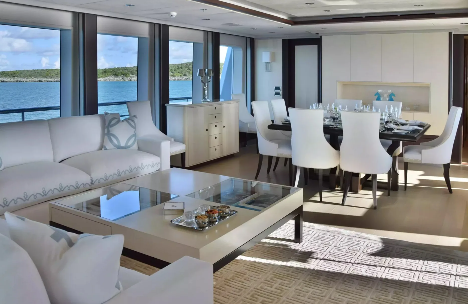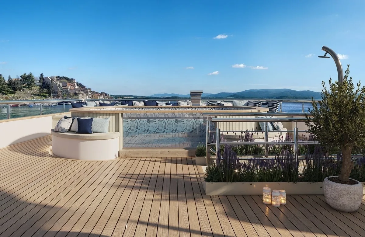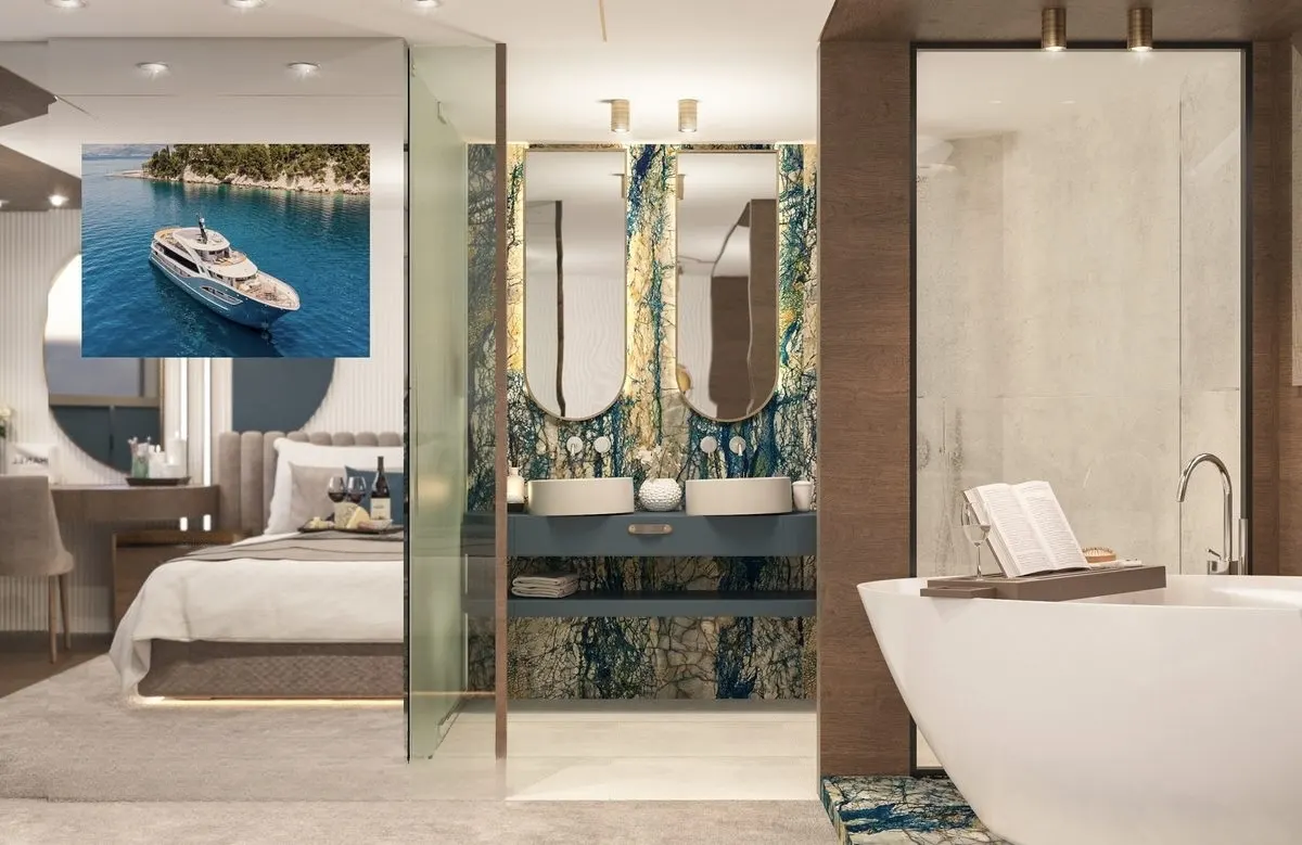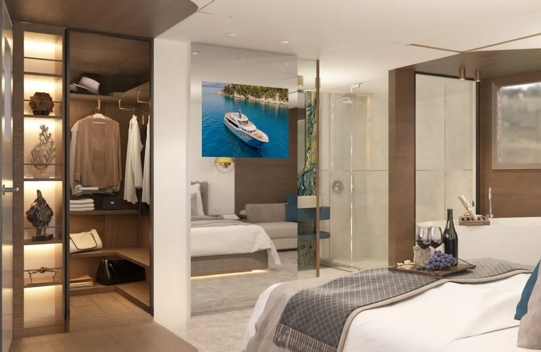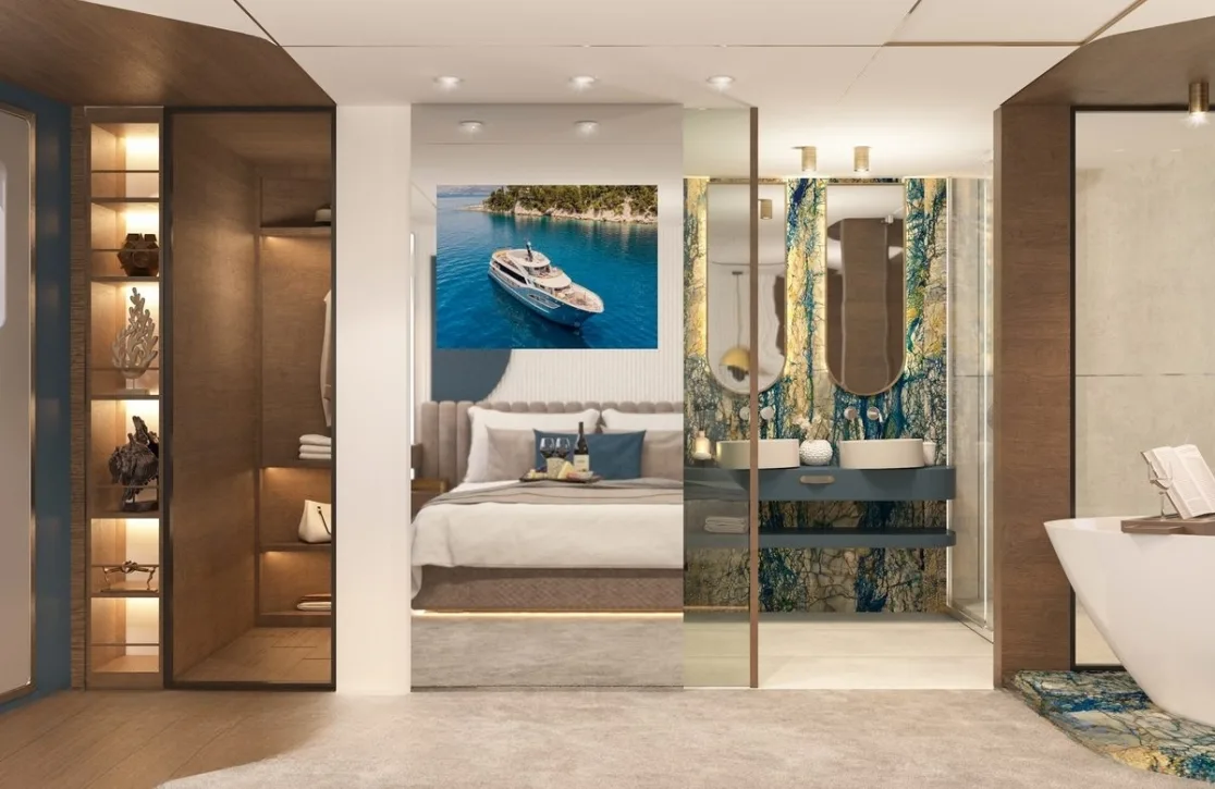 Onboard Bella, each day unfolds with opportunities for relaxation and rejuvenation. Picture yourself unwinding in a sunlit deck jacuzzi or staying fit in the state-of-the-art gym. As the sun dips below the horizon, gather with friends by the pool, where laughter and stories flow as freely as the champagne. With Wi-Fi at your fingertips and air conditioning ensuring comfort in any climate, the world feels both refreshingly distant and intimately close.