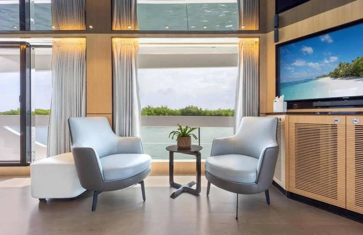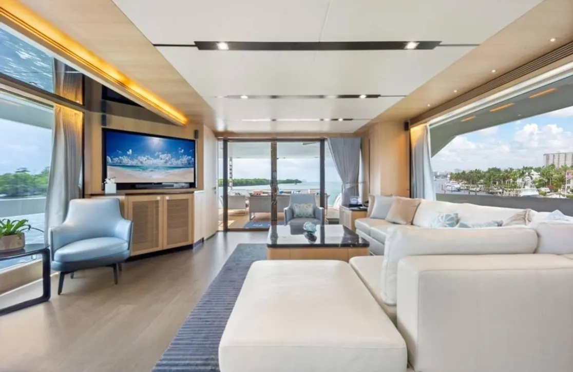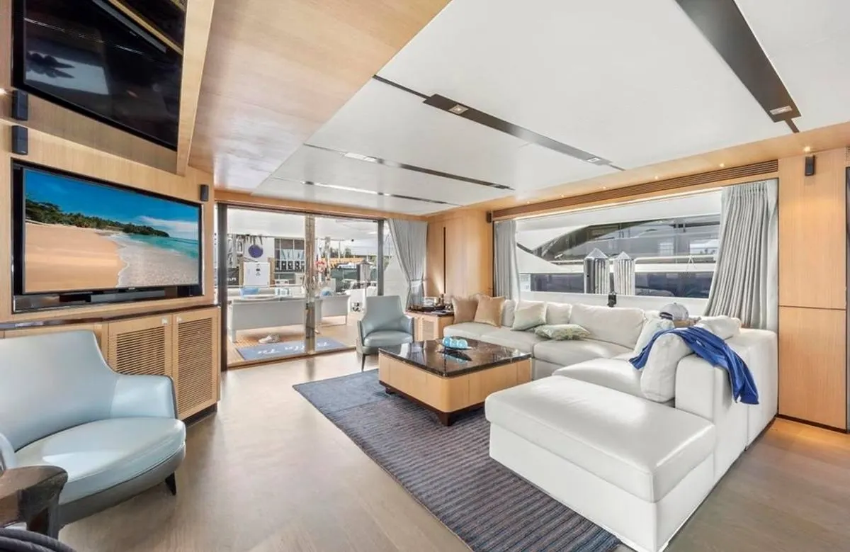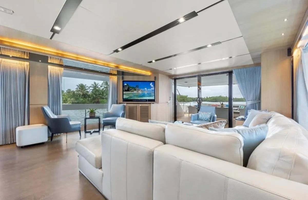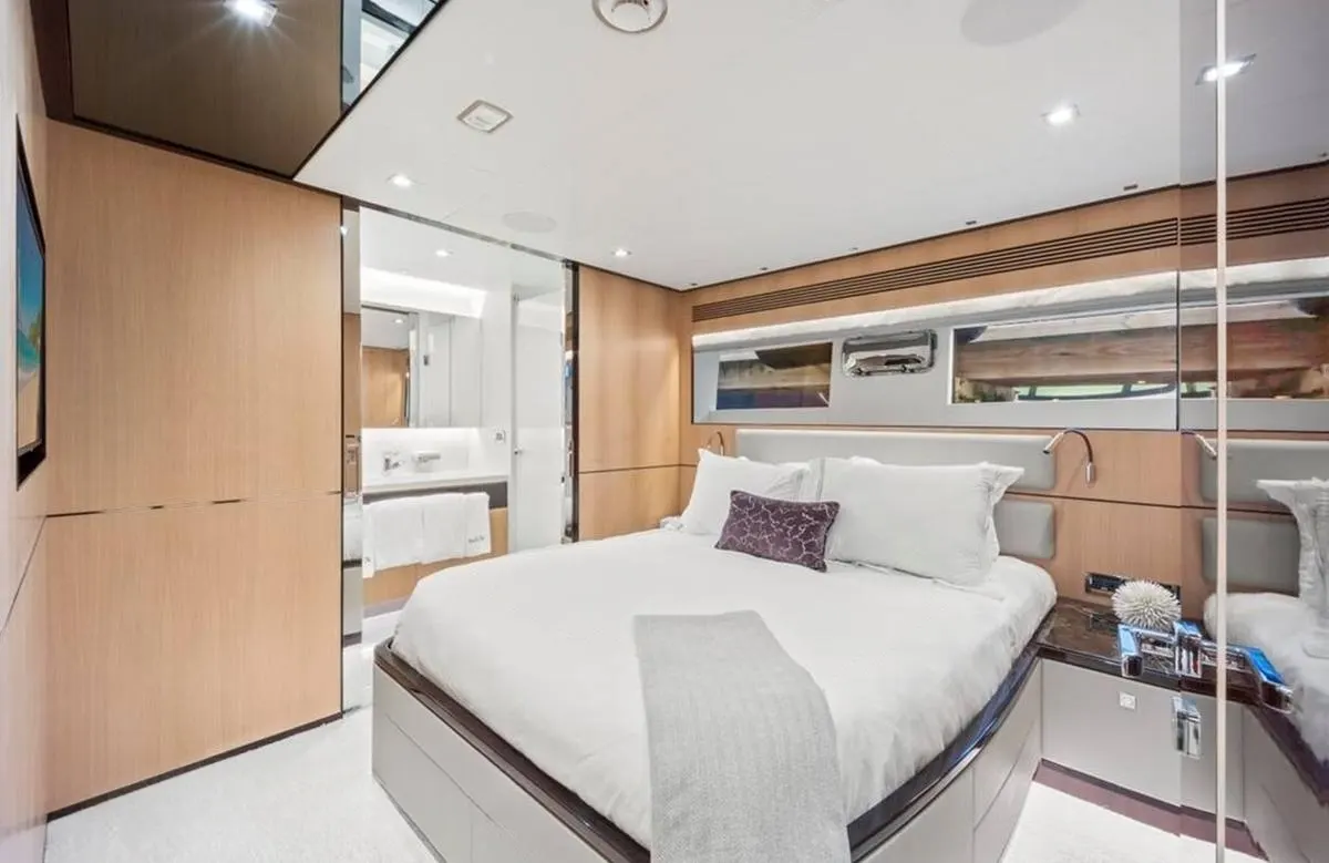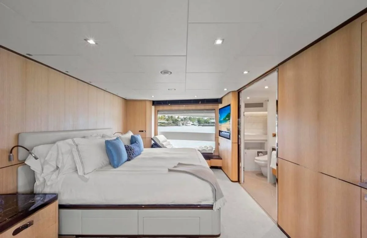 Aboard Bella Tu, sun-dappled days drift into serene evenings as you indulge in her thoughtfully designed spaces. The beach club serves as your gateway to the sea, while the sun deck offers panoramic views, perfect for sunset gatherings. With high-speed Wi-Fi, you choose when to stay connected or simply retreat into the moment. The hydraulic swim platform invites spontaneous dips into azure waters, and the exterior bar becomes a hub for toasting adventures yet to come. State-of-the-art air conditioning ensures comfort as you explore every corner of this floating paradise.