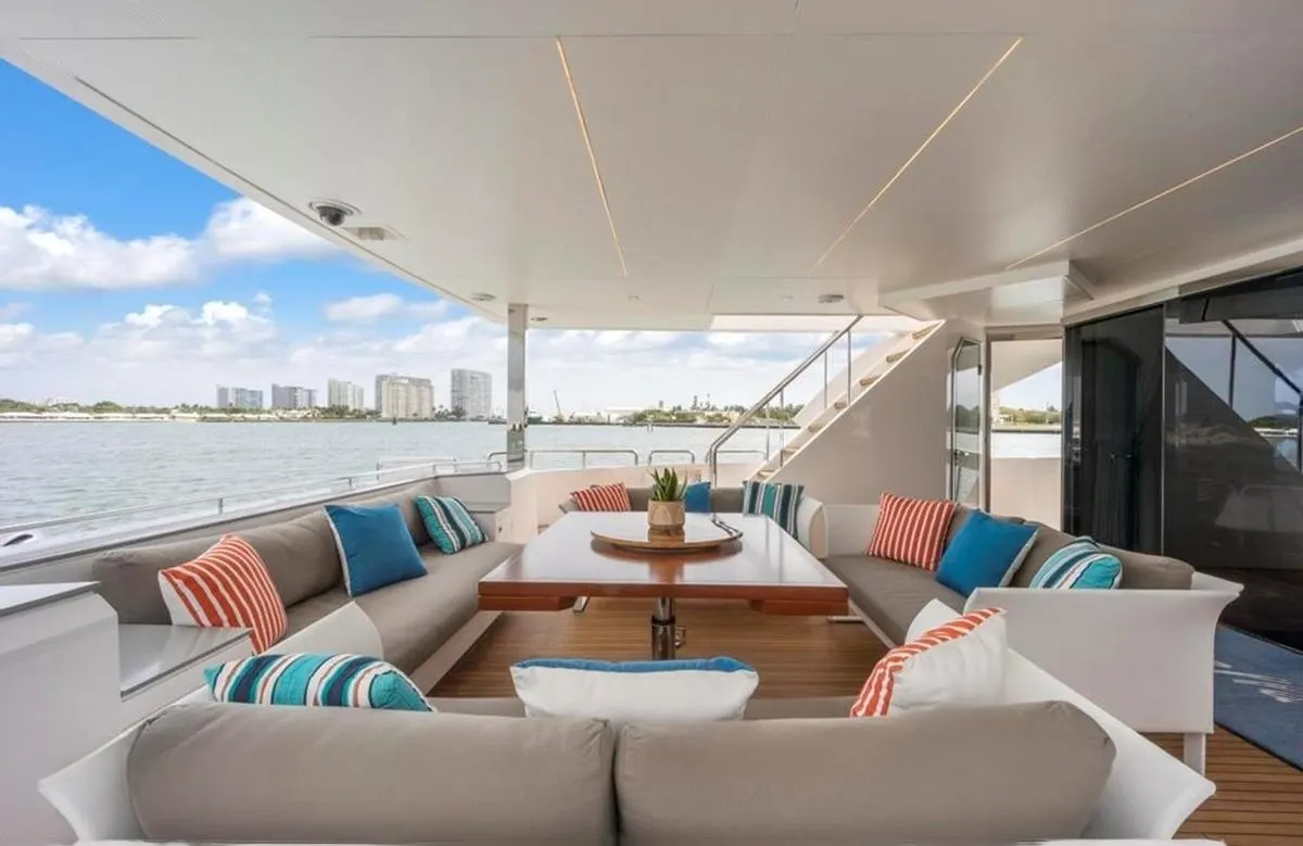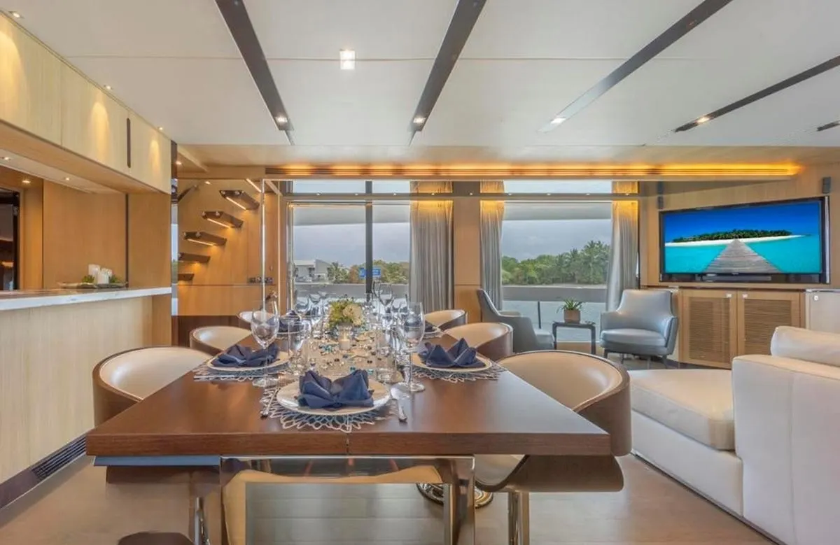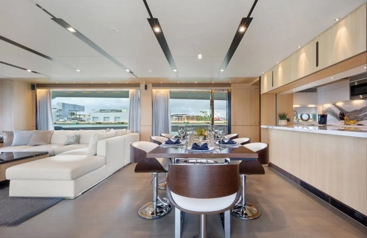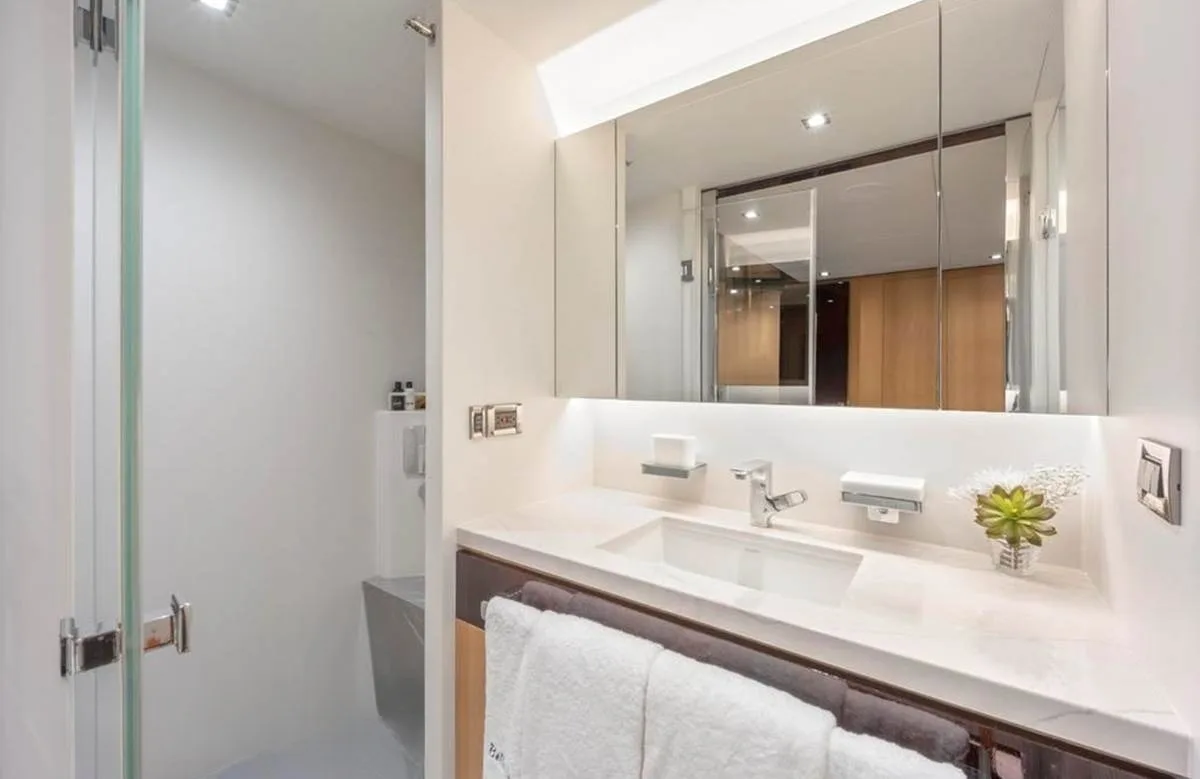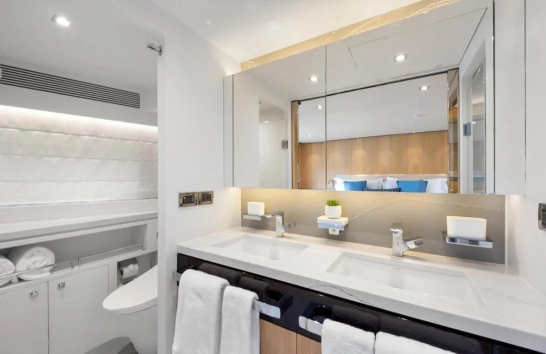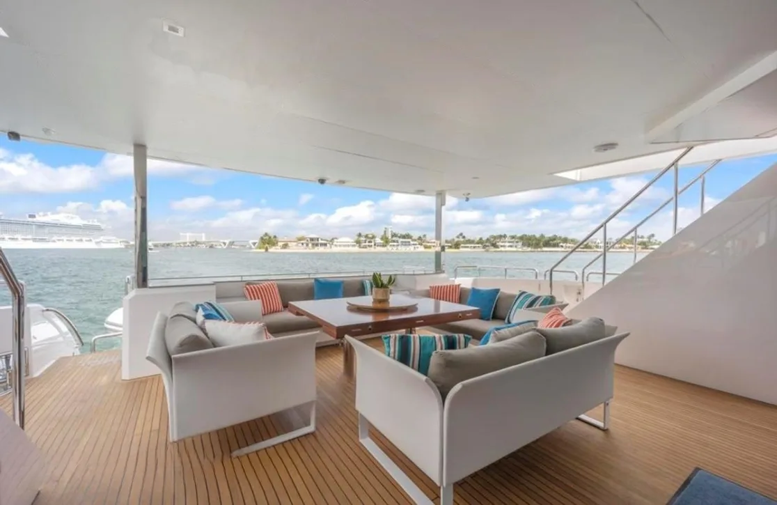Aboard Bella Tu, sun-dappled days drift into serene evenings as you indulge in her thoughtfully designed spaces. The beach club serves as your gateway to the sea, while the sun deck offers panoramic views, perfect for sunset gatherings. With high-speed Wi-Fi, you choose when to stay connected or simply retreat into the moment. The hydraulic swim platform invites spontaneous dips into azure waters, and the exterior bar becomes a hub for toasting adventures yet to come. State-of-the-art air conditioning ensures comfort as you explore every corner of this floating paradise.