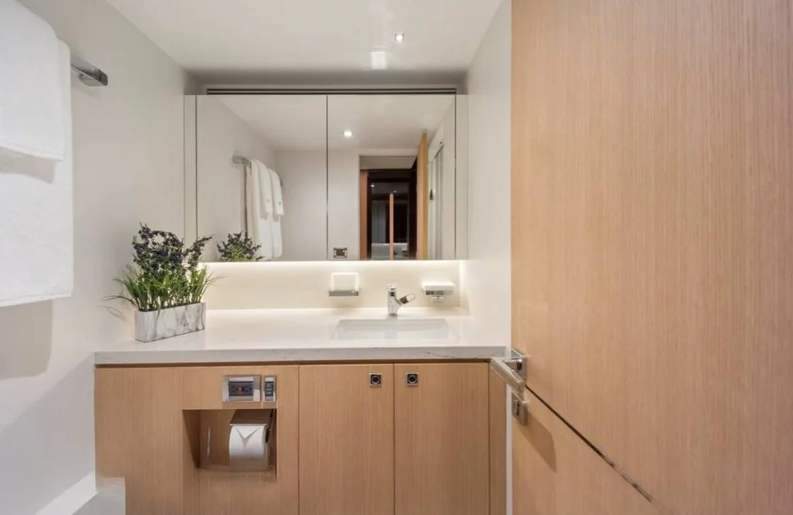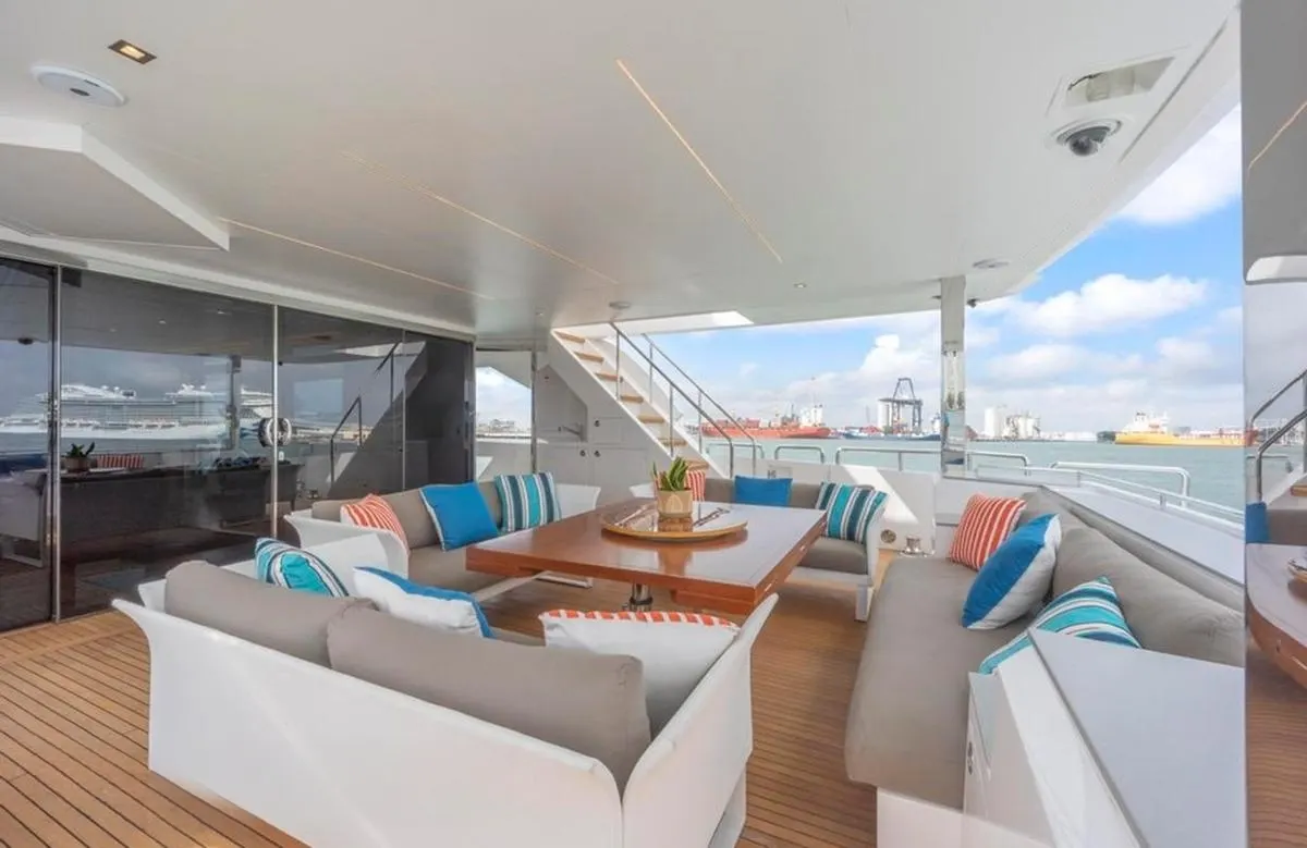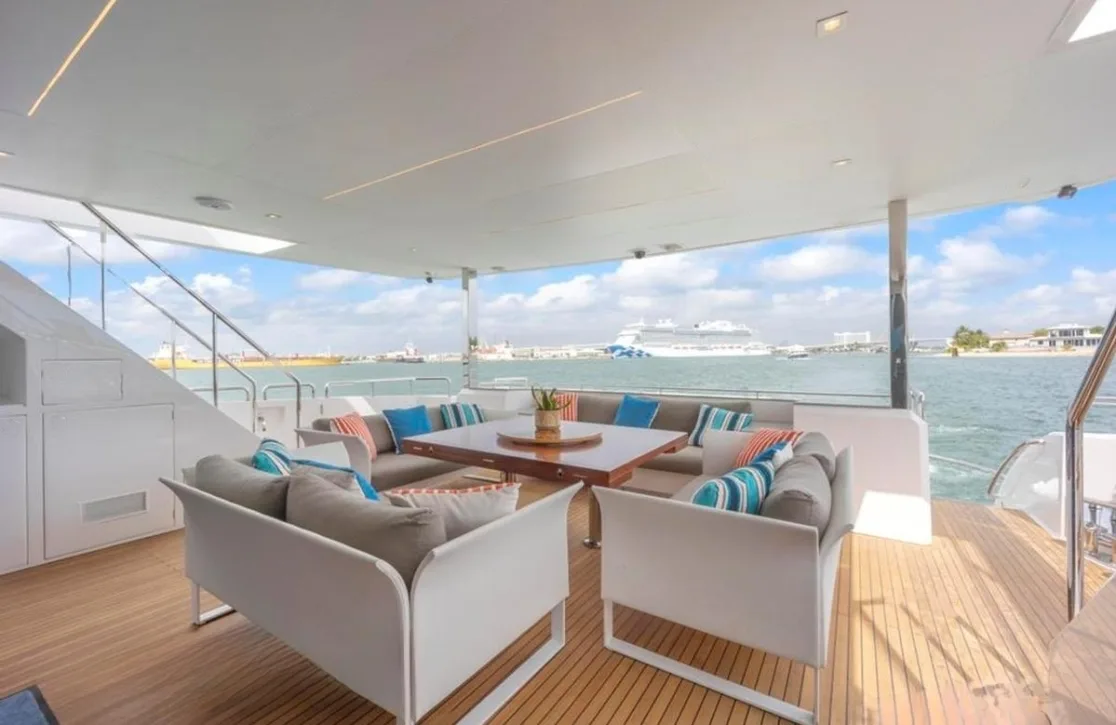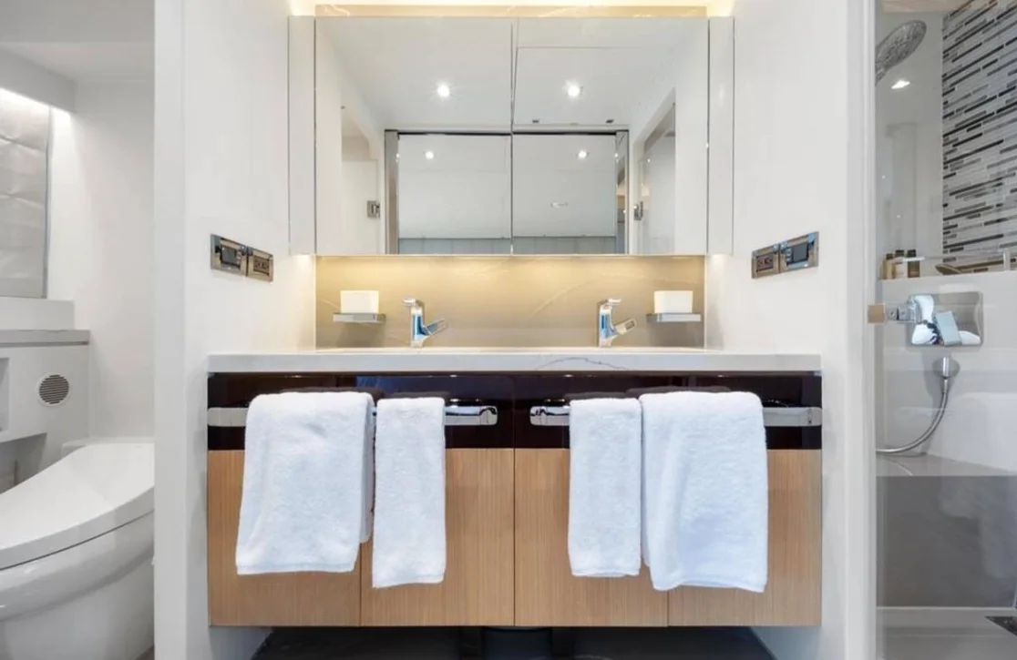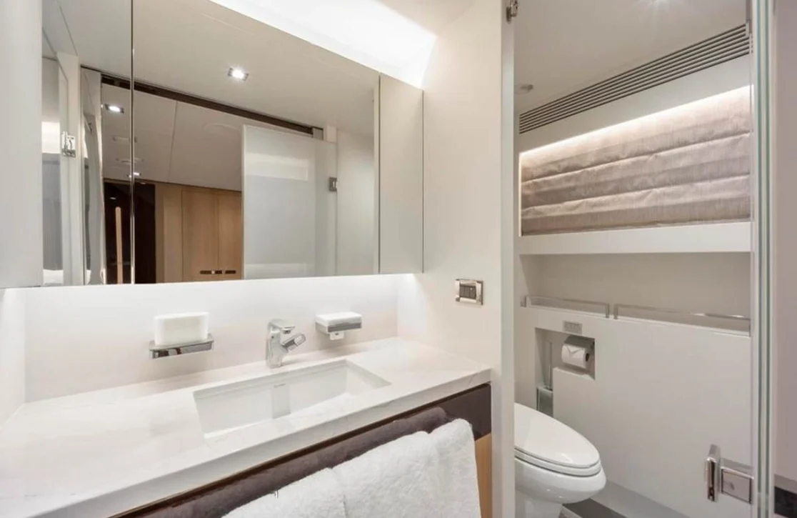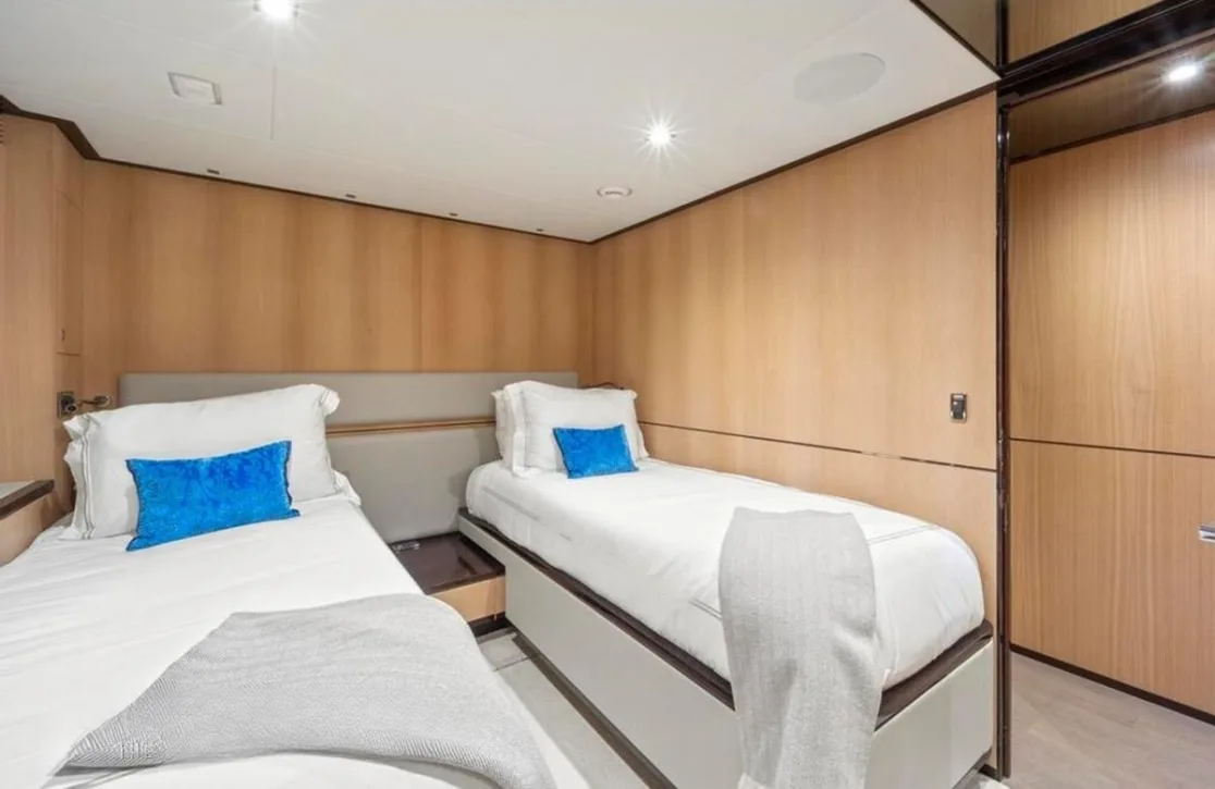 Aboard Bella Tu, sun-dappled days drift into serene evenings as you indulge in her thoughtfully designed spaces. The beach club serves as your gateway to the sea, while the sun deck offers panoramic views, perfect for sunset gatherings. With high-speed Wi-Fi, you choose when to stay connected or simply retreat into the moment. The hydraulic swim platform invites spontaneous dips into azure waters, and the exterior bar becomes a hub for toasting adventures yet to come. State-of-the-art air conditioning ensures comfort as you explore every corner of this floating paradise.