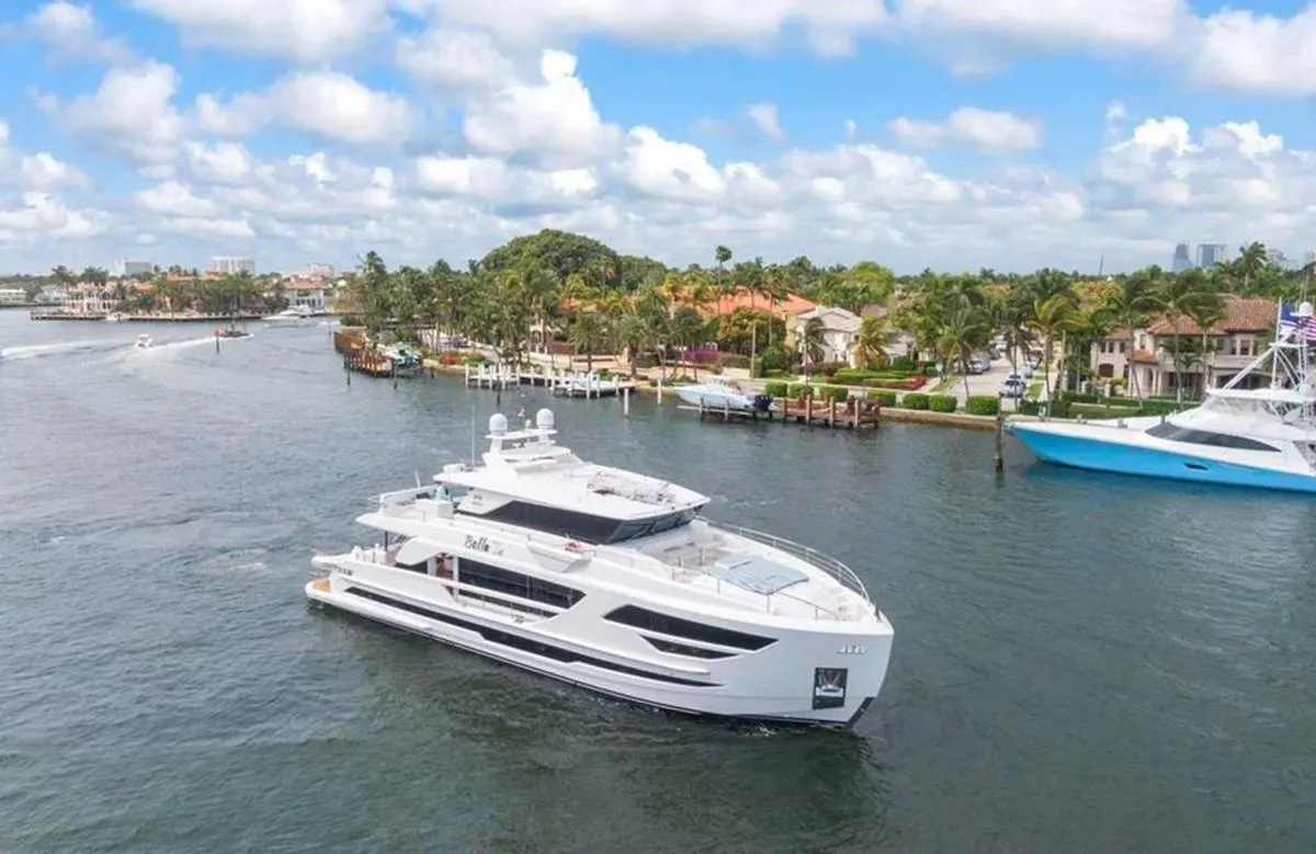 Set sail on the Bella Tu, a captivating 27-meter motor yacht crafted by Horizon, where every moment becomes a tapestry of leisure and adventure. Launched in 2019, her elegant design by Cor D. Rover invites you into a world where style meets oceanic grandeur. Imagine a week enveloped in the tranquility of five beautifully appointed cabins, each a sanctuary on the sea, as you glide...
