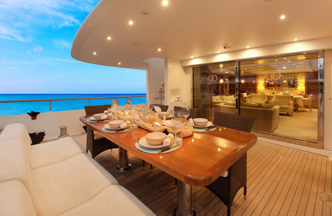 Aboard Beluga, every detail has been thoughtfully curated to enhance your journey. As you enjoy a leisurely morning workout in the state-of-the-art gym, the gentle sway of the yacht reminds you of the adventure that awaits. Later, unwind in the deck jacuzzi with a glass of champagne, feeling the bubbles dance around you as you gaze out over endless horizons. The yacht’s advanced stabilization system ensures a smooth and gentle ride, whether you’re anchored in a hidden bay or cruising the open sea. Stay connected with Wi-Fi throughout your voyage, and relish the perfect climate with air conditioning that adjusts to every nuance of your journey, providing an exquisite balance of comfort and elegance.