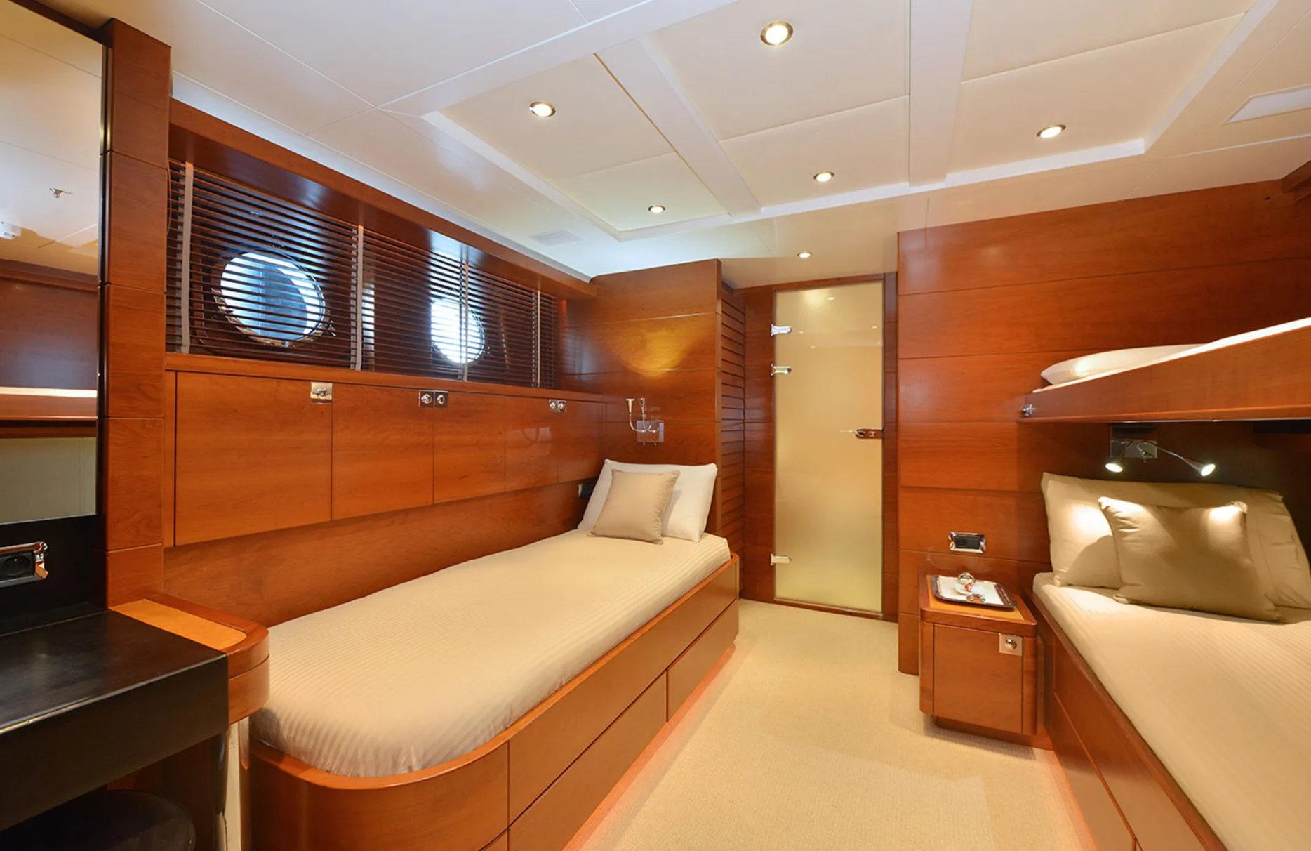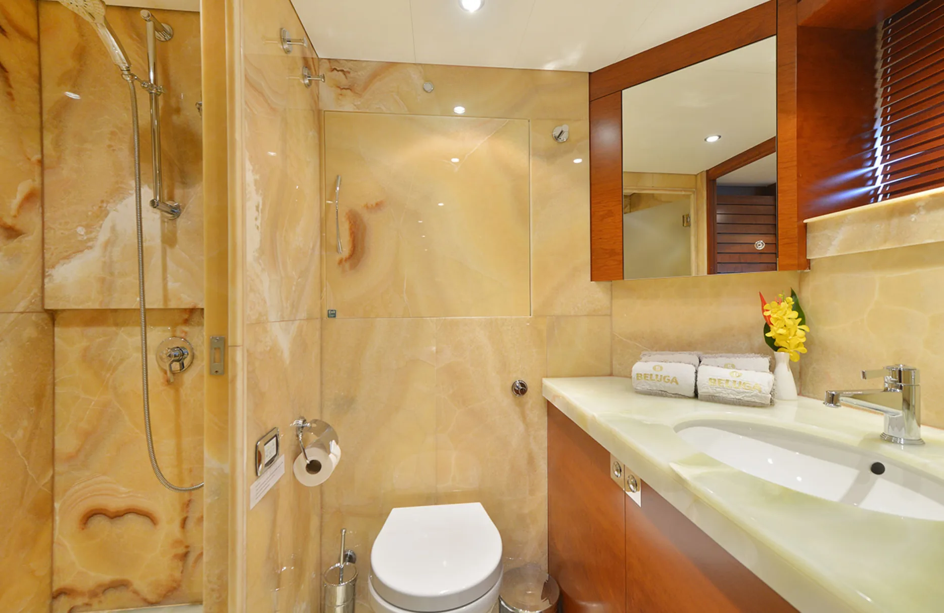 Beluga offers a sanctuary of comfort and elegance for up to 12 guests across its five beautifully appointed cabins. The master suite and accompanying cabins, including two double and two twin rooms, provide a versatile arrangement, perfect for families or groups. Each space is meticulously designed to offer a restful retreat, where the gentle lull of the sea lulls you to sleep, and the morning light streaming through the windows invites you to start another day of adventure. With plush bedding and thoughtful touches, every cabin ensures a peaceful and restorative experience, making each night aboard as delightful as the days spent exploring.