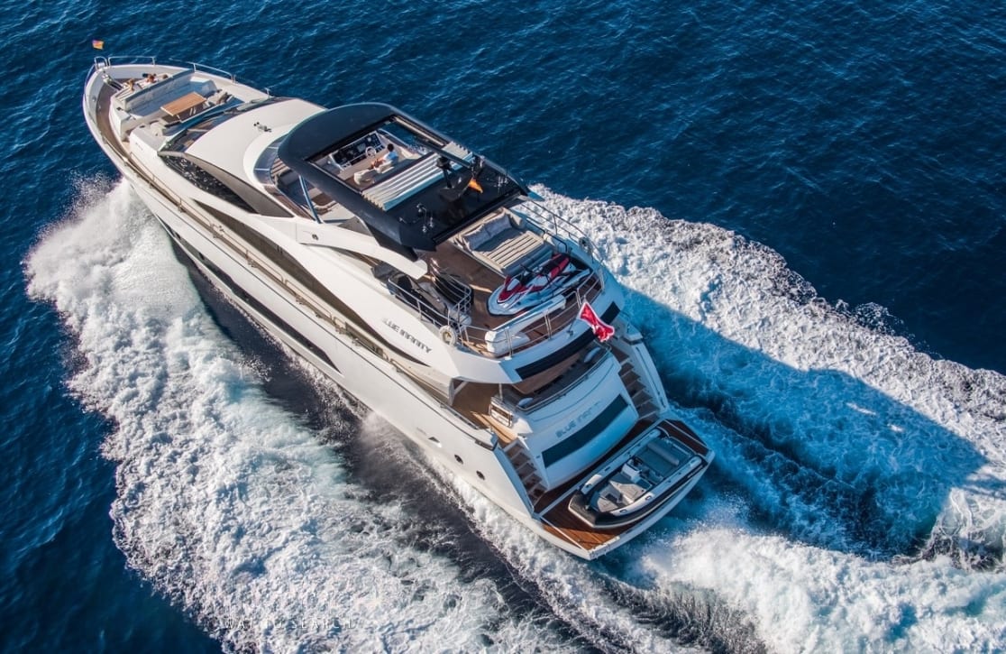 The Blue Infinity, a 26-meter masterpiece crafted by Sunseeker, offers an elegant escape into the heart of the sea. As you board, you are welcomed into a world where every detail is designed for your indulgence. With a cruising speed of 22 knots and the ability to reach up to 30 knots, this yacht promises both speed and stability, making it ideal for exploring both...
