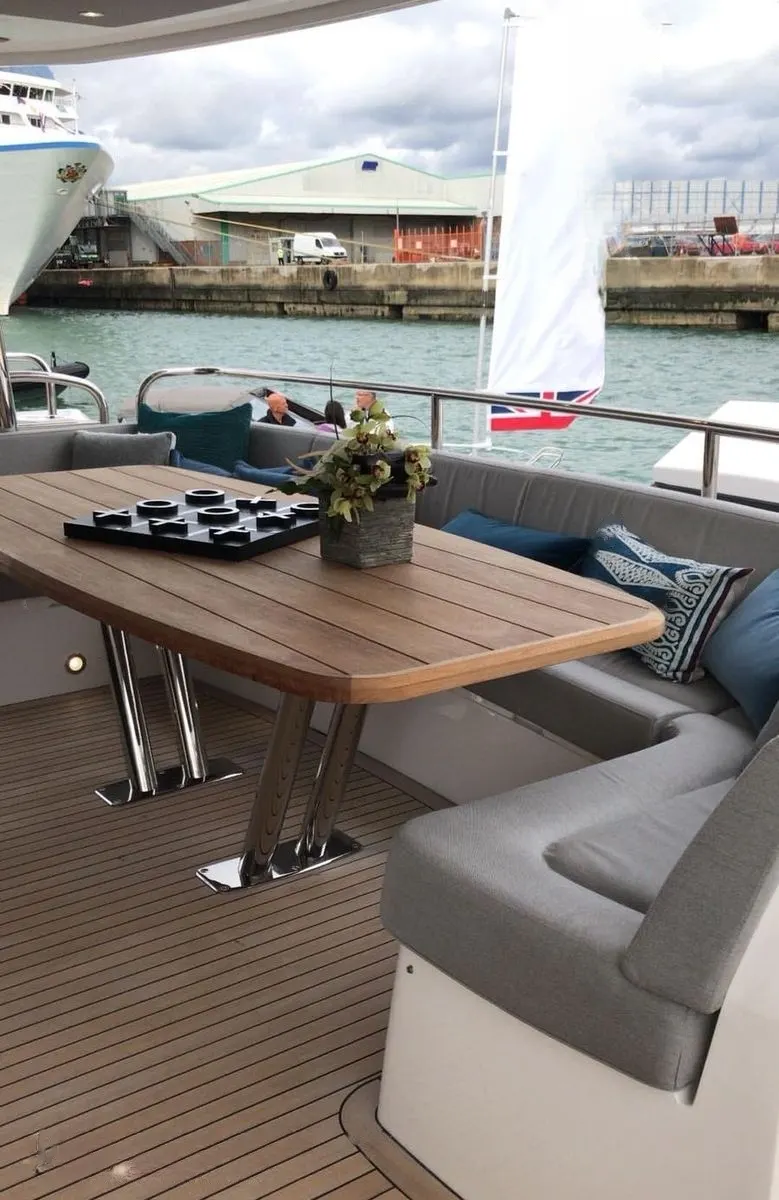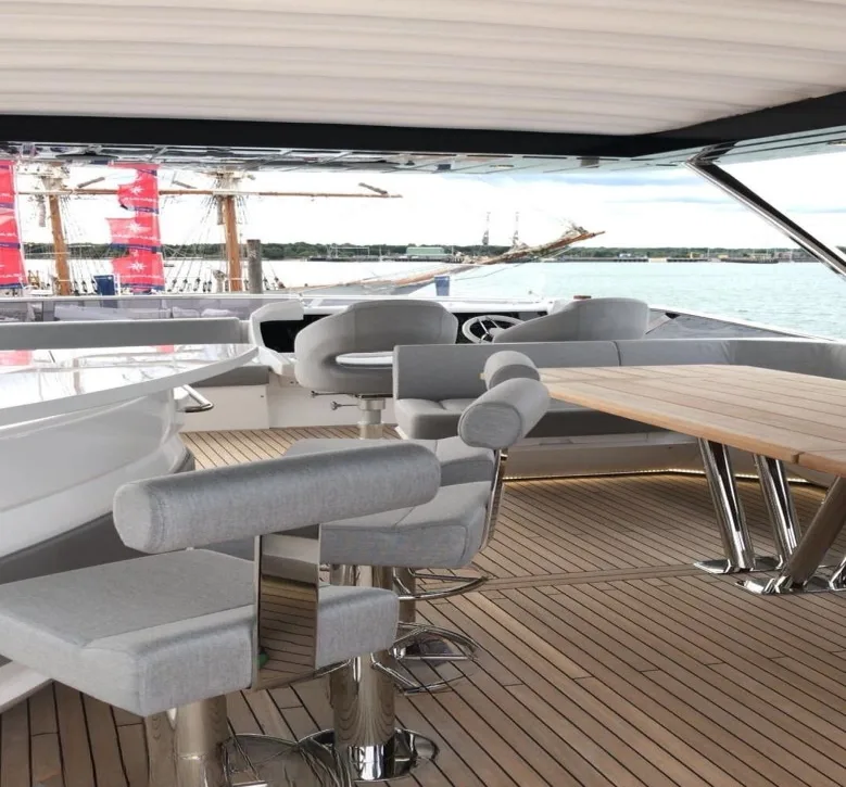 Life aboard Blue Infinity is a blend of relaxation and sophistication, where every moment is an opportunity for pleasure. The sun deck is perfect for basking under the sun, while the foredeck seating offers a more intimate setting for morning coffee or evening cocktails. Inside, the air-conditioned interiors provide a cool retreat, seamlessly connecting you to the world with onboard Wi-Fi. Evenings can be spent at the exterior bar, exchanging stories under the stars, as the yacht glides effortlessly across the water.