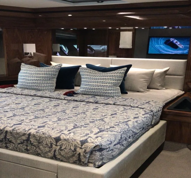 Blue Infinity invites up to eight guests to enjoy the comfort of its four beautifully appointed cabins. As the sun rises, the gentle motion of the yacht offers a unique awakening, surrounded by the tranquility of the sea. The master suite, along with a VIP cabin and two adaptable twin or double cabins, promises restful nights and serene mornings. Each space is thoughtfully designed to offer privacy and comfort, ensuring that every guest feels at home.