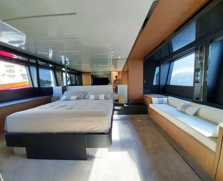 Chiluce offers a haven for up to six guests within her three impeccably designed cabins. Each space is crafted to provide a sanctuary of comfort, where waking up to the gentle sway of the sea becomes a cherished ritual. With interiors that blend sophistication and warmth, the cabins are perfect for both restful slumbers and leisurely mornings. The accommodations aboard Chiluce ensure that every guest feels enveloped in tranquility, making each day on the water a delightful escape.