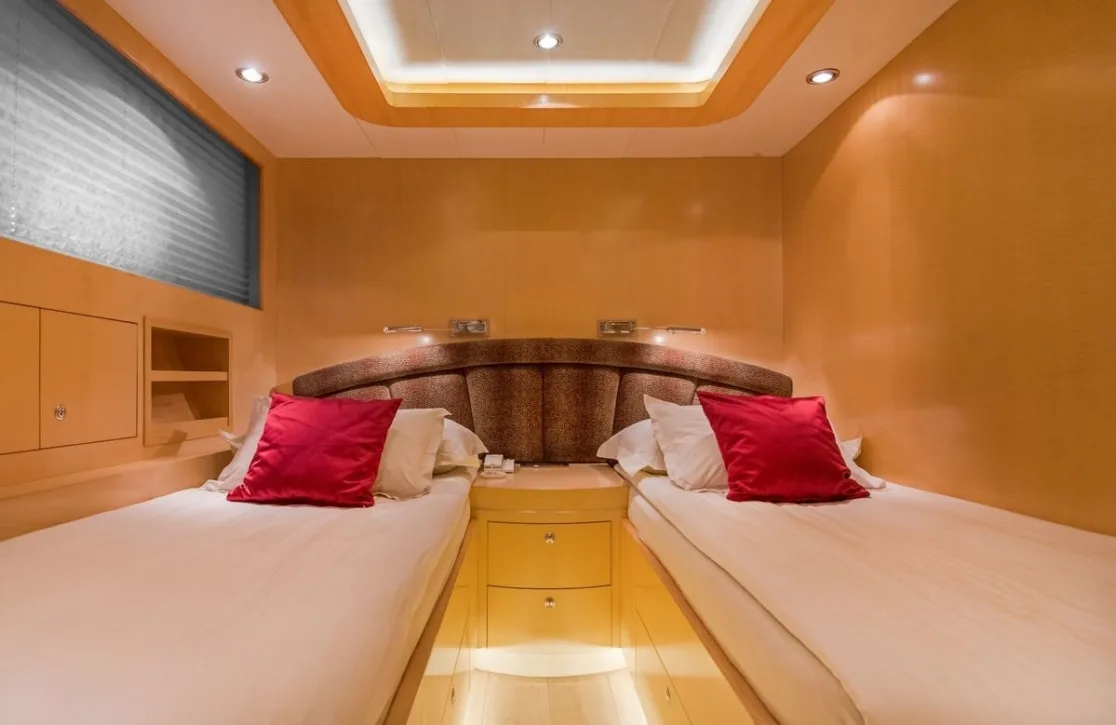 Set sail on a remarkable voyage aboard the Conte Alberti, a vessel where elegance meets adventure. Built by the renowned Horizon shipyard, this 27-meter marvel promises an exquisite journey across the Mediterranean. As you glide along at a leisurely 11 knots, or feel the rush of reaching 22 knots, each day presents new horizons to explore, both aboard and ashore. With a dedicated crew of four attending to every detail, your experience is seamless and unforgettable. Whether it’s savoring culinary delights or discovering hidden coves, each moment aboard Conte Alberti is crafted to perfection.