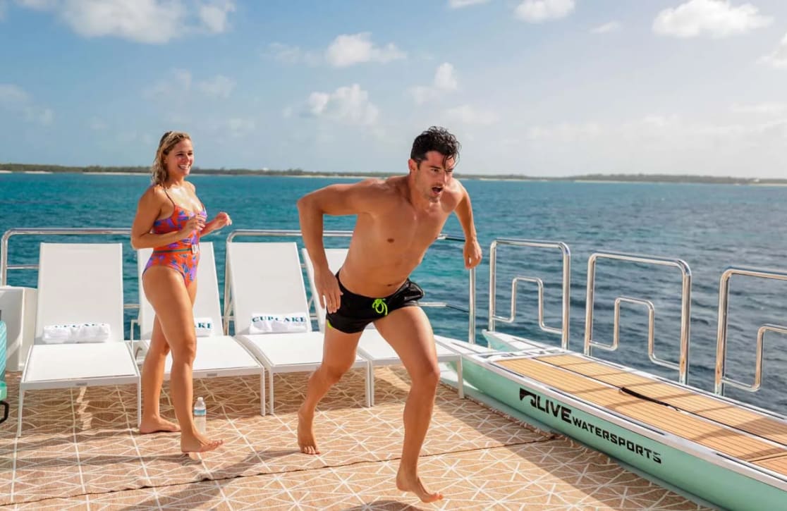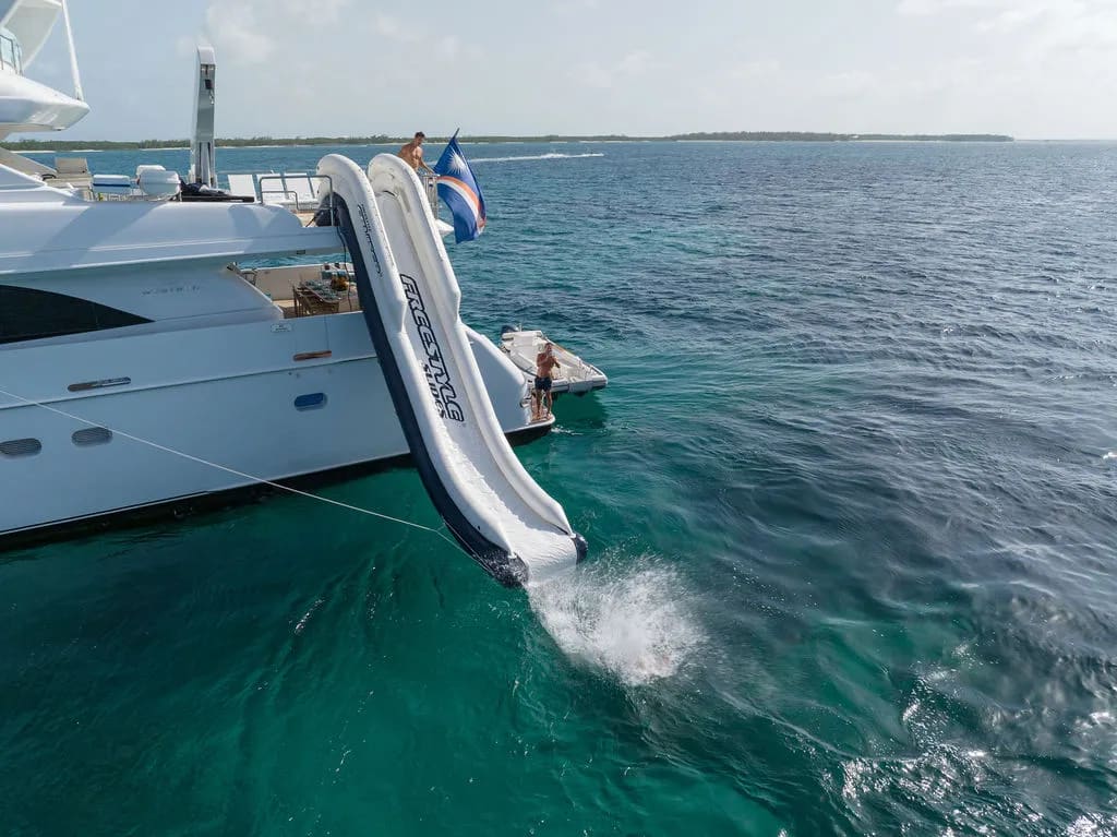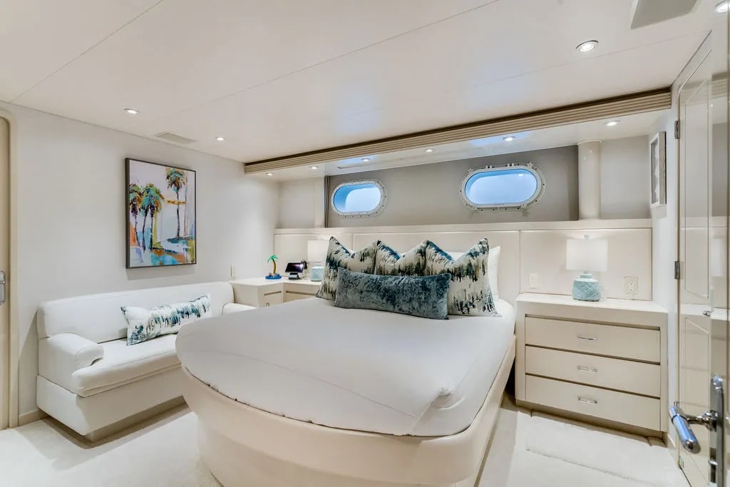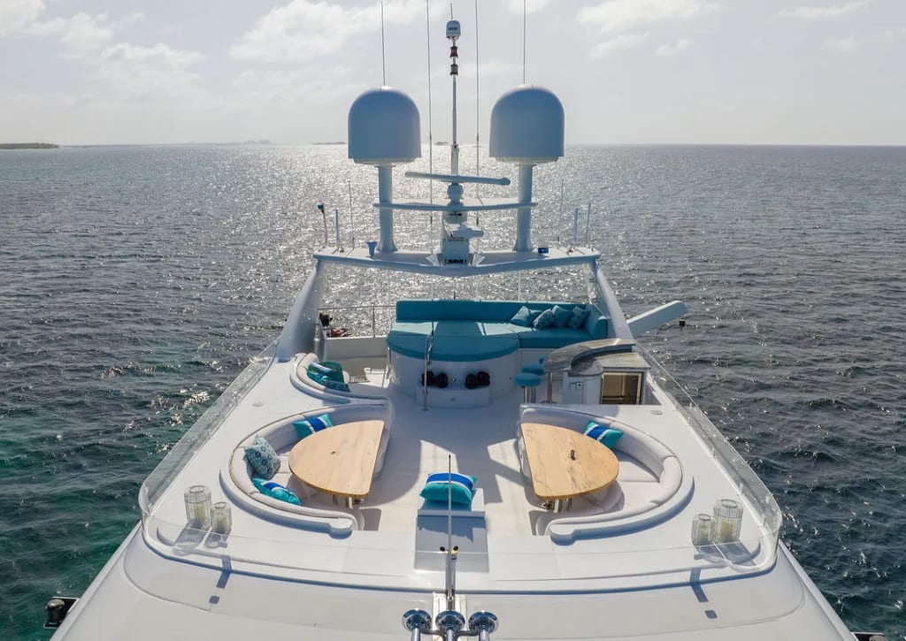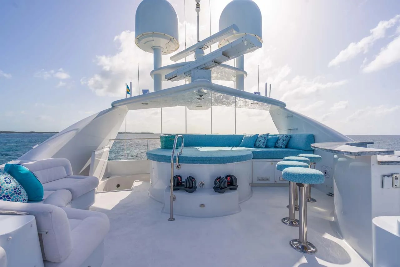 Onboard Cupcake, every detail is curated to enhance your experience, offering a seamless blend of comfort and sophistication. The sun deck invites you to unwind on plush sunpads, while the bubbling deck jacuzzi provides a perfect spot for relaxation as you watch the sun dip below the horizon. For those with a passion for wellness, the fully-equipped gym offers a space to maintain your fitness routine, complemented by the refreshing sea breeze. As day turns to evening, gather around the exterior bar for cocktails and conversation, or retreat to the air-conditioned sanctuary of the interior, where seamless Wi-Fi connectivity keeps you connected with the world. The thoughtfully designed spaces are perfect for both intimate gatherings and grand celebrations, ensuring every moment aboard Cupcake is a cherished memory.