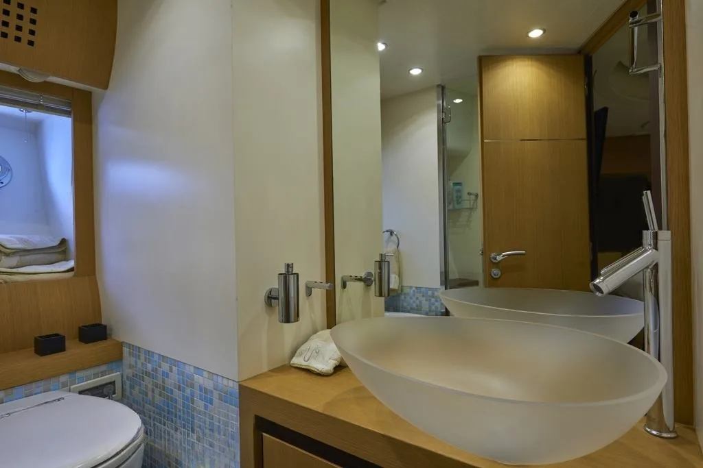 Aboard Danzas, every detail is crafted for your enjoyment and relaxation. Her spacious sun deck invites you to bask in the warmth of the Mediterranean sun, while plush sunpads offer the perfect spot for an afternoon nap or evening stargazing. The foredeck seating provides an intimate setting for morning coffee or sunset cocktails, enhanced by the gentle sea breeze. With satellite TV and air conditioning throughout, your comfort is ensured whether you’re seeking a peaceful retreat or lively entertainment. The stern and bow thrusters add to the seamless experience, allowing for smooth and effortless maneuvering in every port.