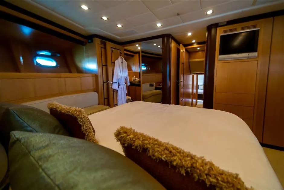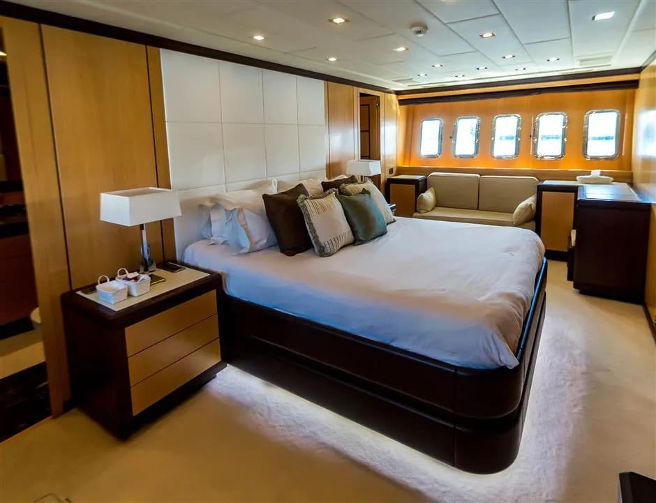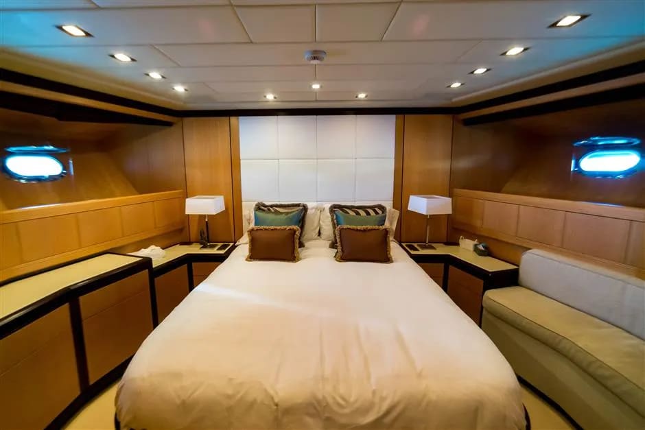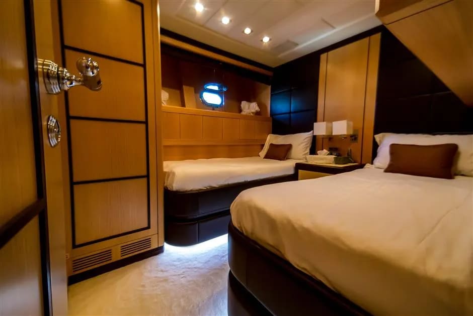 The accommodations aboard Daya are a testament to refined comfort, with four beautifully appointed cabins that envelop guests in a serene ambiance. Each room offers a sanctuary of rest, where the gentle sway of the yacht lulls you into a peaceful slumber. Waking up to the gentle glow of dawn over the open sea, you’ll find the cabins are more than a place to rest—they are havens of tranquility and style, thoughtfully designed to enhance your experience aboard.