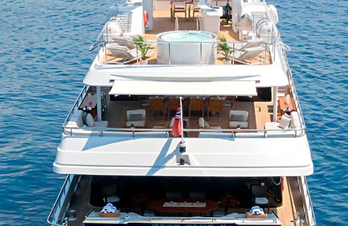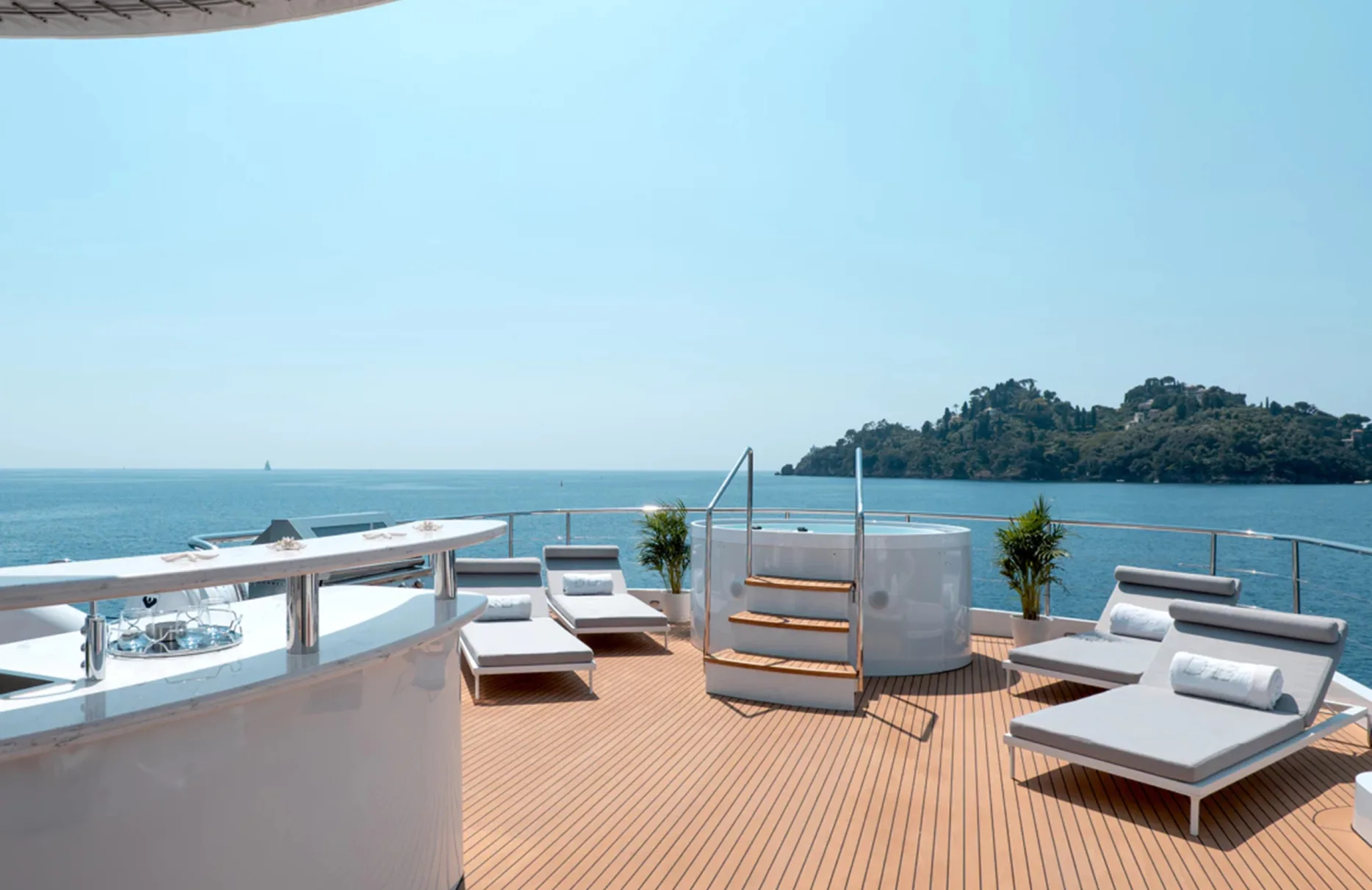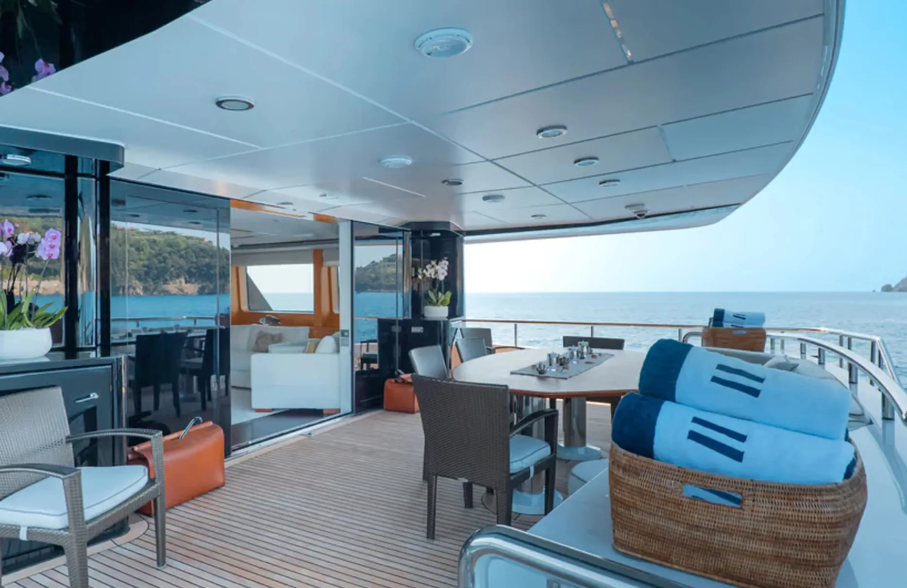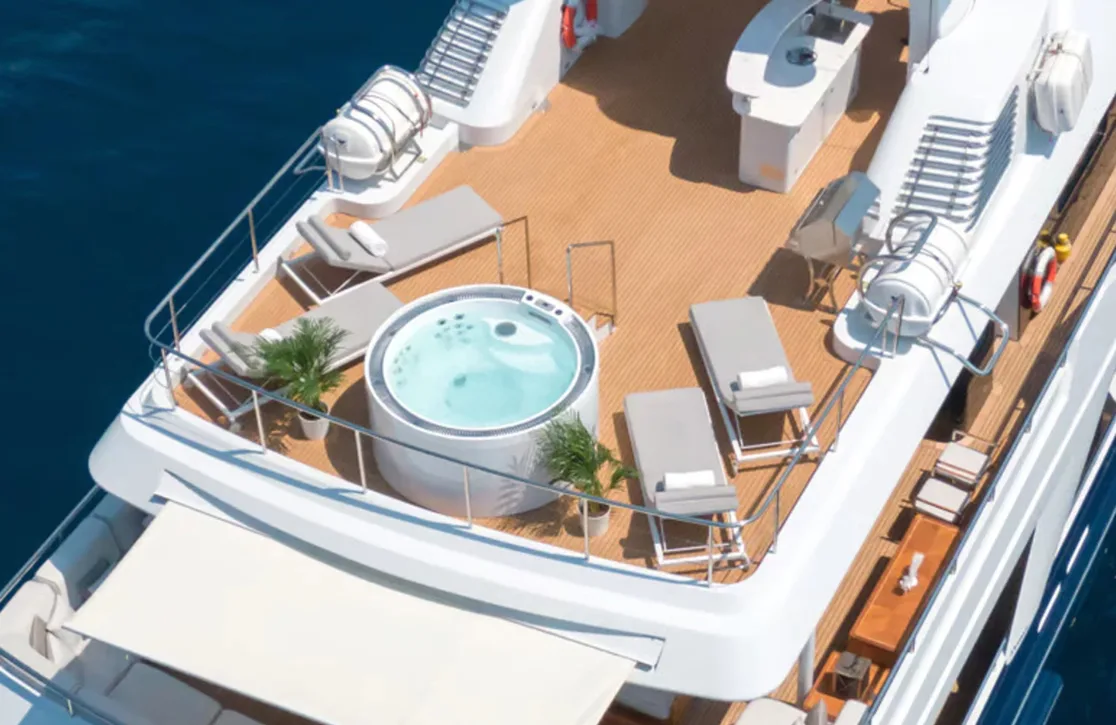 Aboard Deep Blue II, every detail has been thoughtfully curated to enhance your journey. Picture yourself savoring a sunset cocktail in the jacuzzi, the gentle sea breeze accompanying your evening. The yacht’s sun-drenched deck invites leisurely afternoons, while the sophisticated owner’s study offers a private retreat for those moments of solitude. As the evening unfolds, the exterior bar becomes the heart of social gatherings, where conversations flow as freely as the ocean beneath you. With Wi-Fi connectivity keeping you in touch with the world and the comfort of climate control, your onboard lifestyle is both serene and invigorating.