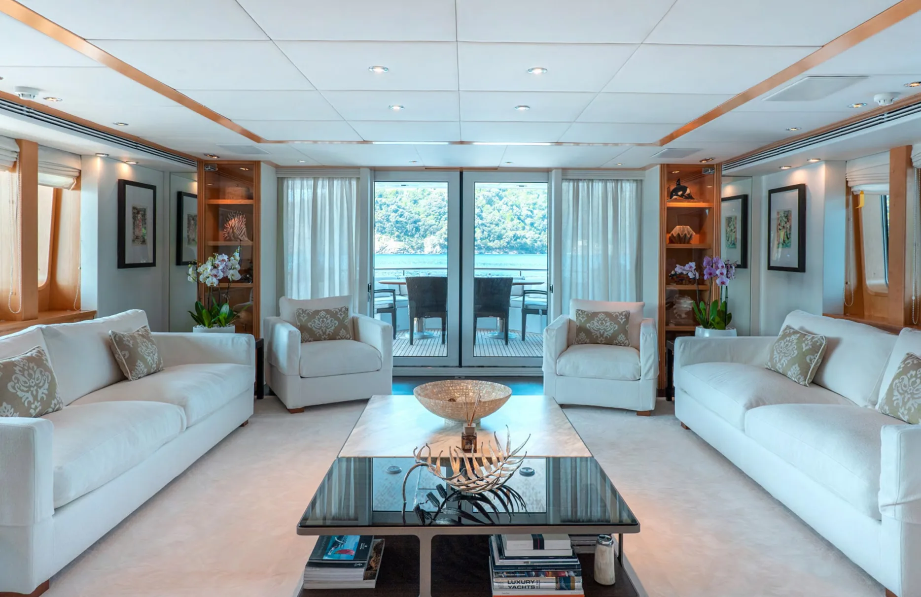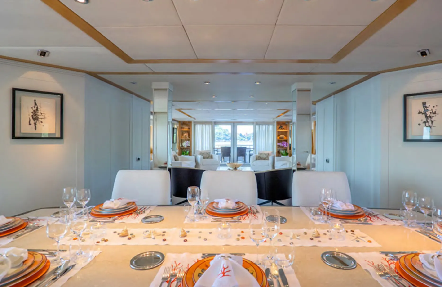 For those with an eye for the extraordinary, Deep Blue II offers an experience that transcends the ordinary. Crafted by the esteemed Oceanco and designed by Donald Starkey, this 44-meter masterpiece invites you to explore the world from the comfort of an exquisite floating sanctuary. With the capability to cruise at a swift 19 knots and a range of over 2,800 nautical miles, the adventures aboard Deep Blue II promise to be as expansive as the seas themselves. Whether you are drawn to serene days anchored in secluded coves or the allure of vibrant coastal harbors, this yacht is your gateway to a week of boundless exploration both at sea and ashore.
