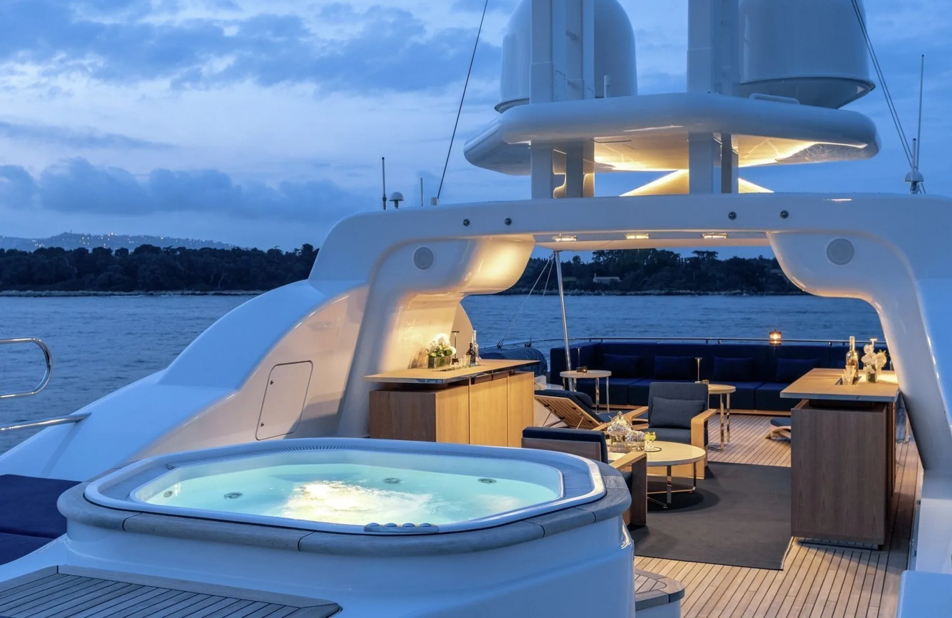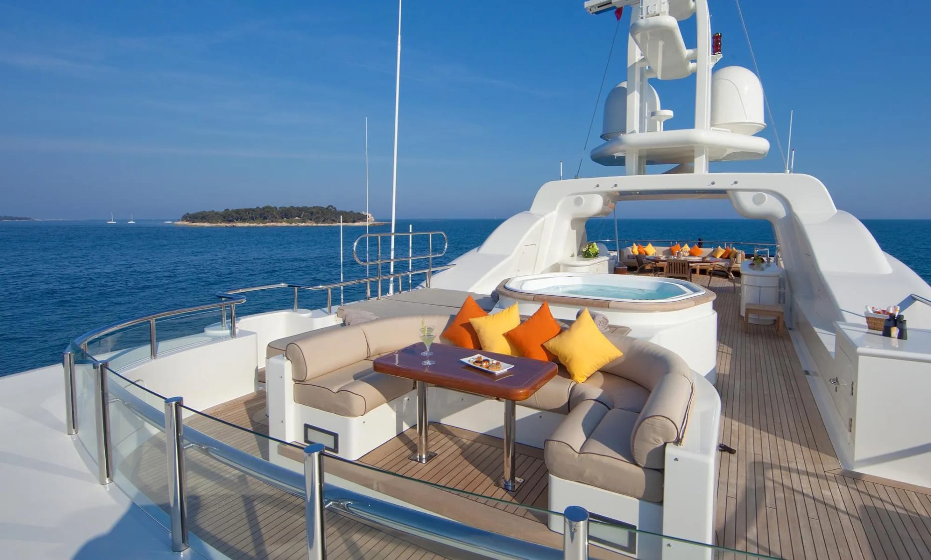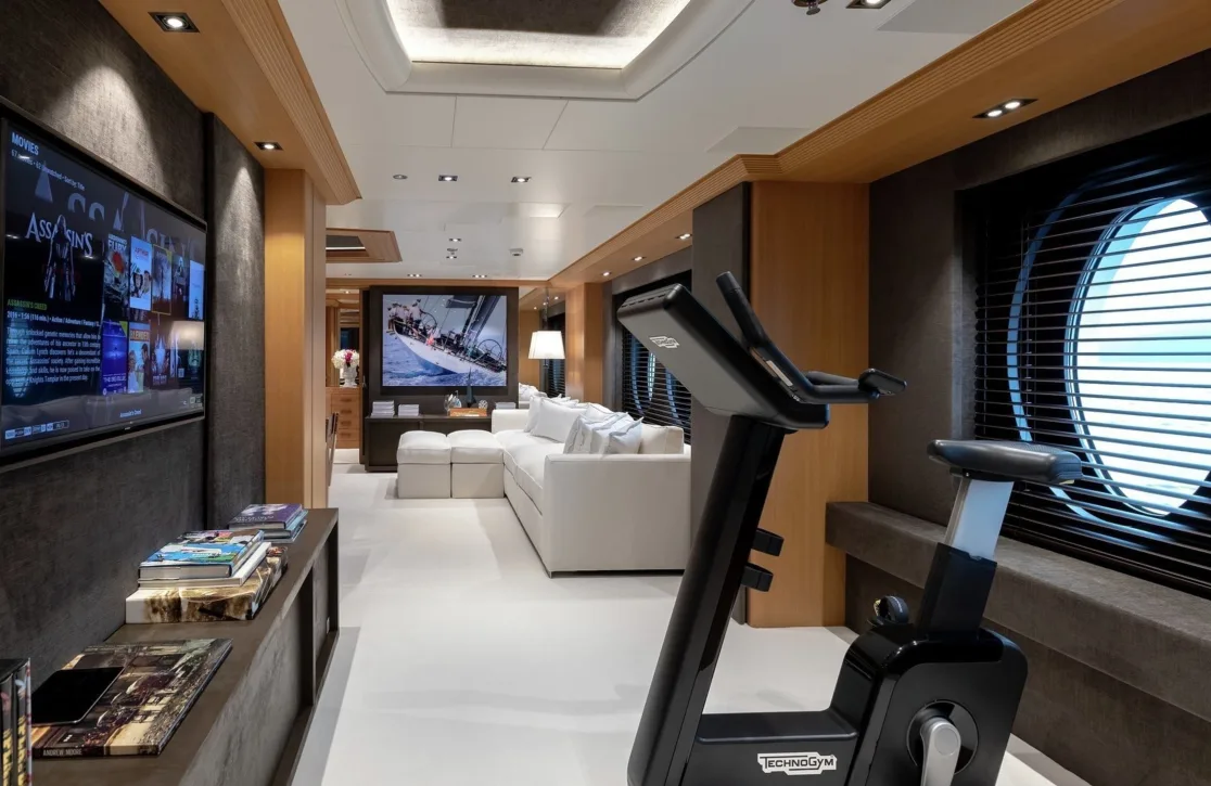 Onboard Deja Too, every moment is tailored for your pleasure. Whether you are soaking in the deck jacuzzi with a view of the horizon or maintaining your fitness routine in the state-of-the-art gym, each space is designed for your comfort and enjoyment. The yacht’s seamless blend of indoor and outdoor areas offers the perfect setting for gatherings under the stars or a quiet evening with satellite TV. With air conditioning and Wi-Fi at your fingertips, you’ll enjoy a stay that is both connected and relaxed, complete with the soothing presence of the sea.