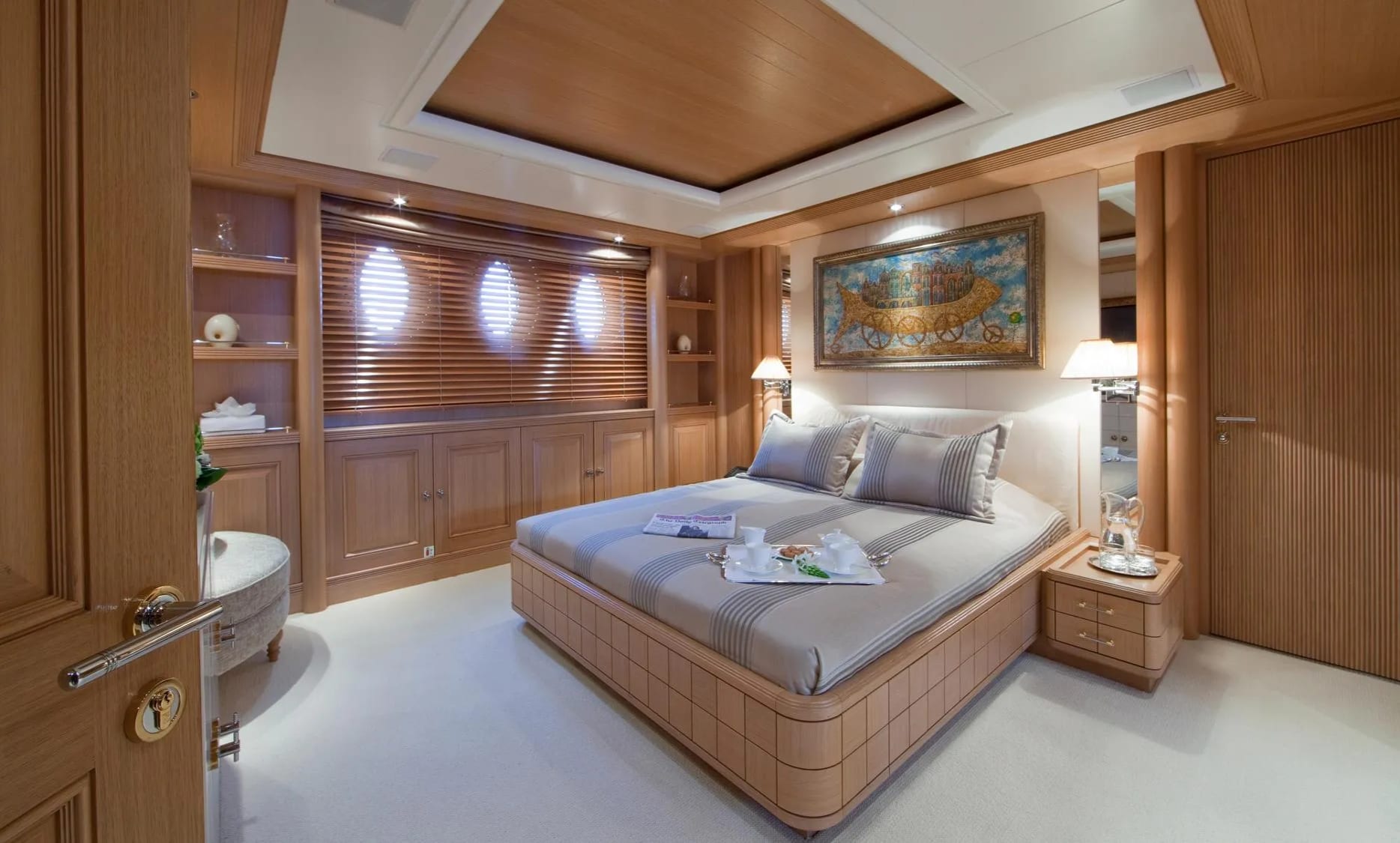 Deja Too welcomes up to twelve guests into her embrace, offering six beautifully appointed cabins that redefine restful luxury. The master suite, along with two double and three twin cabins, provides a sanctuary of tranquility. Each morning begins with the gentle sway of the ocean, as sunlight filters through your window. The thoughtful design and plush bedding ensure every night is restful, making each cabin a private retreat for guests of all ages.