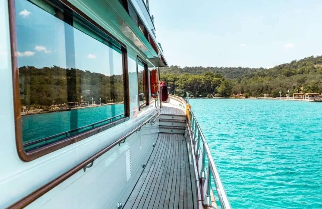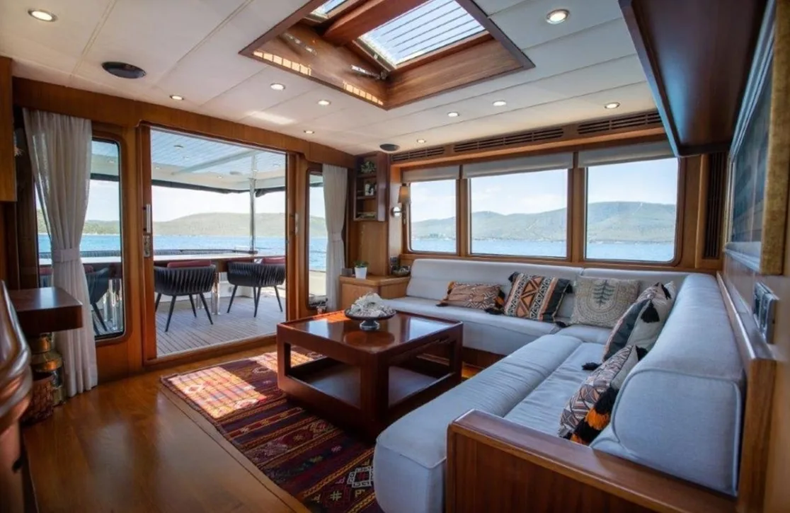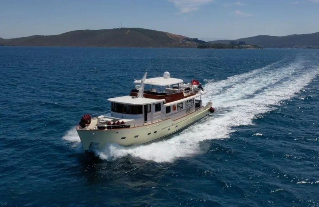Embark on a journey aboard Dilnisin, a yacht where elegance meets performance. Crafted by Taka Yacht Design, this 78-foot vessel offers an unforgettable charter experience. As you navigate the Mediterranean’s azure waters, the yacht’s semi-displacement hull ensures a smooth and stable ride, powered by twin Scania engines that let you explore at a comfortable 12-knot cruise. With a range of 1,200 nautical miles and a shallow draft perfect for anchoring in secluded coves, Dilnisin invites you to uncover the hidden gems of the coastline.