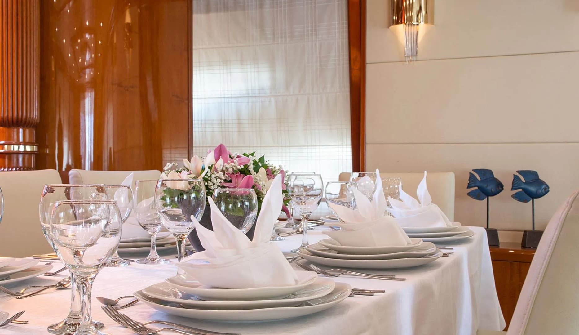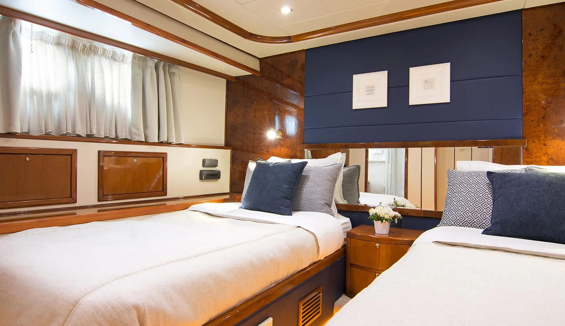 Dream B extends her hospitality to ten discerning guests, each treated to the serene comfort of five thoughtfully appointed cabins. The master suite on the main deck promises mornings of gentle sunlight filtering through expansive windows, while the VIP and double cabins offer sanctuary with sumptuous bedding and elegant decor. Each space is a private retreat, where waking up to the gentle sway of the sea becomes a cherished ritual.