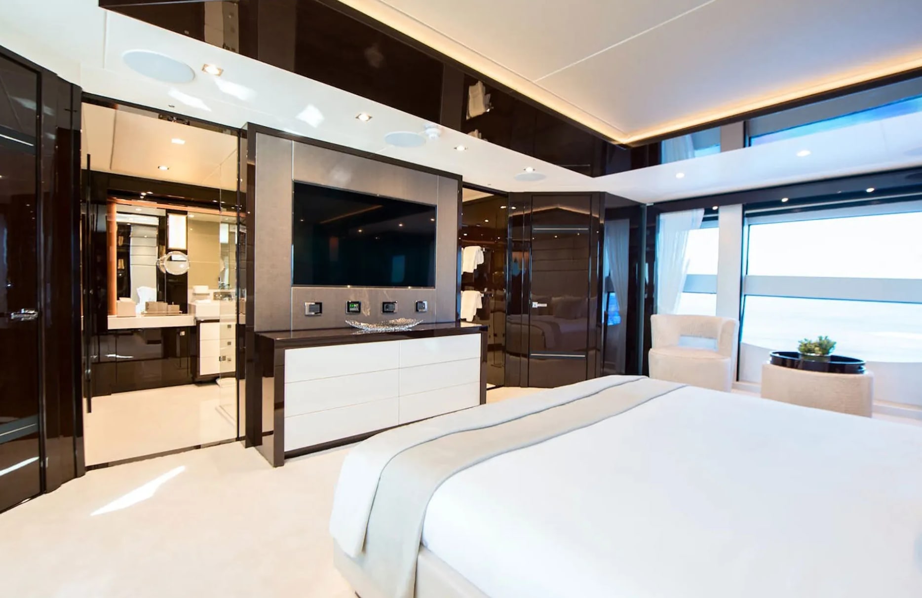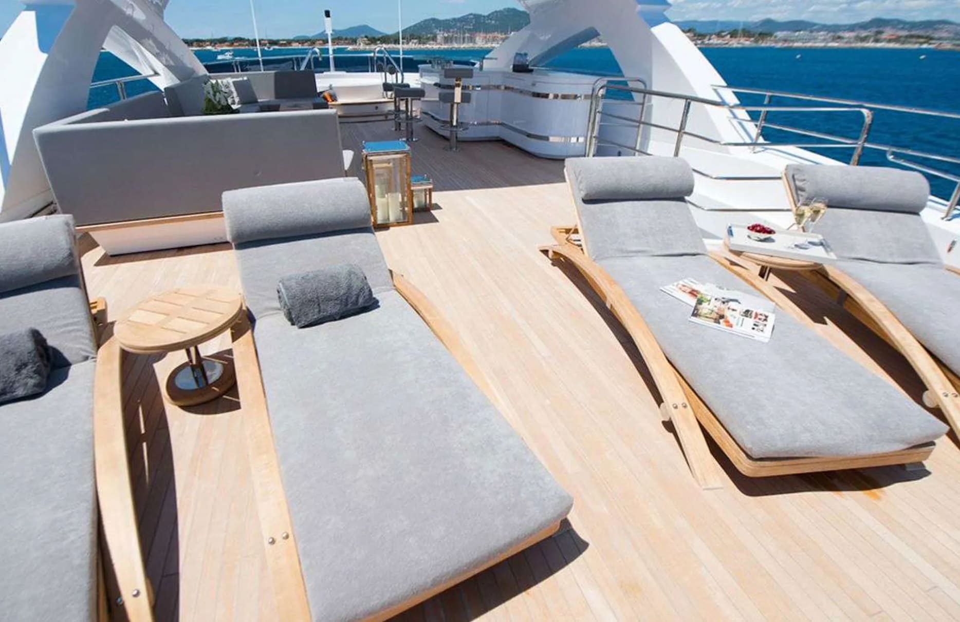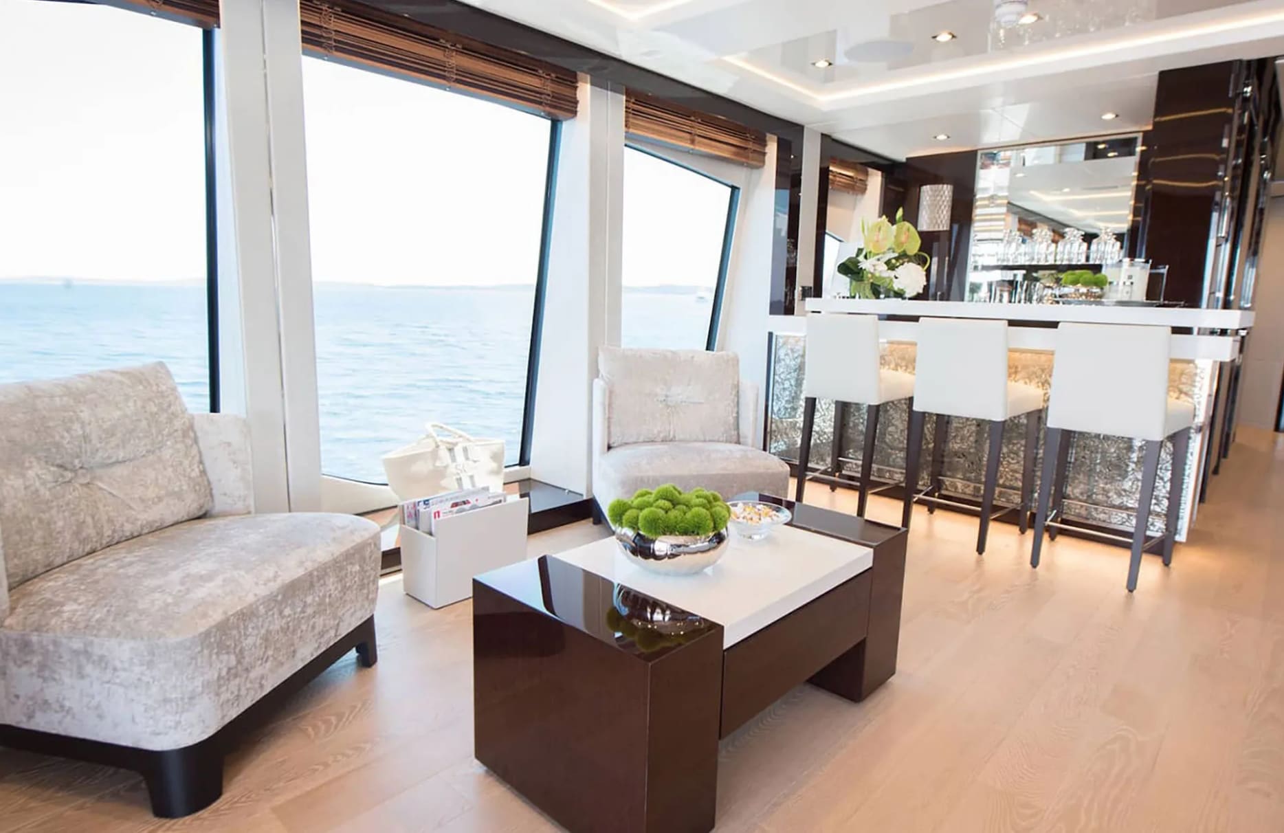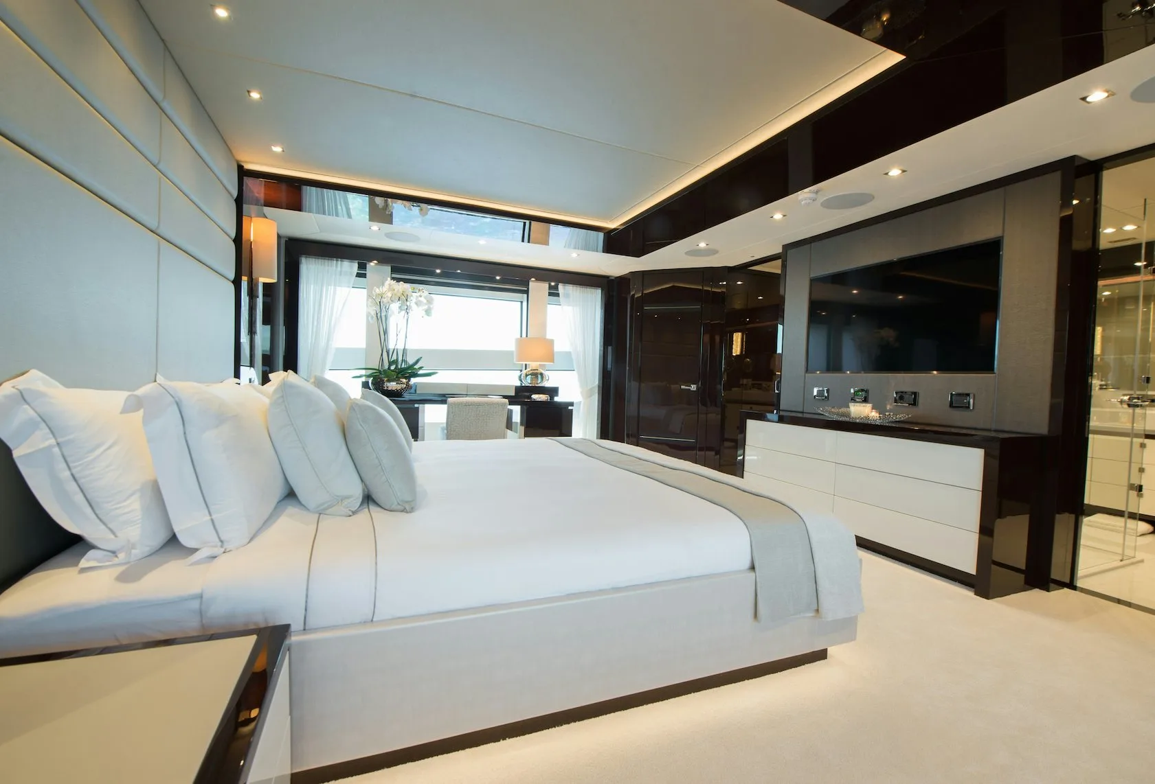 Onboard E-Motion, every detail is designed to enhance your journey. The deck jacuzzi beckons for a sunset dip, while the foredeck seating area provides a perfect setting for al fresco dining under the stars. Experience the joy of morning workouts with state-of-the-art gym equipment, followed by a refreshing outdoor shower. As the day unfolds, retreat to the sunpads or the exterior bar, where handcrafted cocktails await. Whether it’s a tranquil evening or an energetic day, the yacht’s amenities cater to every mood.