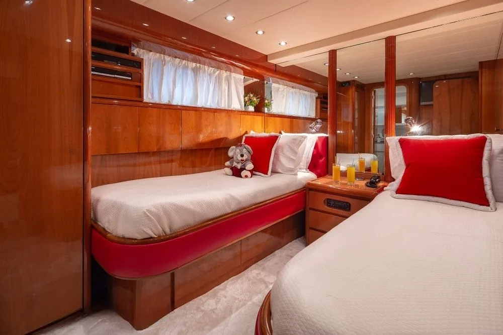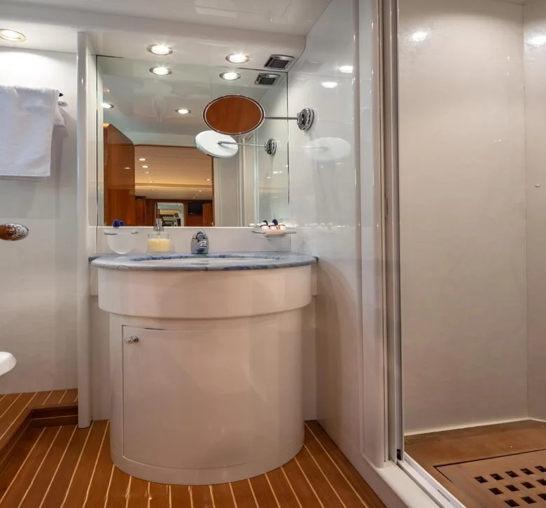Accommodations aboard Efmaria are tailored to offer a sanctuary of rest and rejuvenation for up to 11 guests. The master suite and VIP cabin offer an oasis of privacy, while twin cabins and a convertible option ensure versatility for families or groups. Awaken to the gentle lull of the sea and the promise of a day filled with delightful adventures. Each cabin is thoughtfully designed, allowing you to savor the quiet luxury of your own space amidst the grandeur of the open sea.