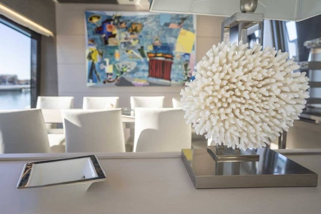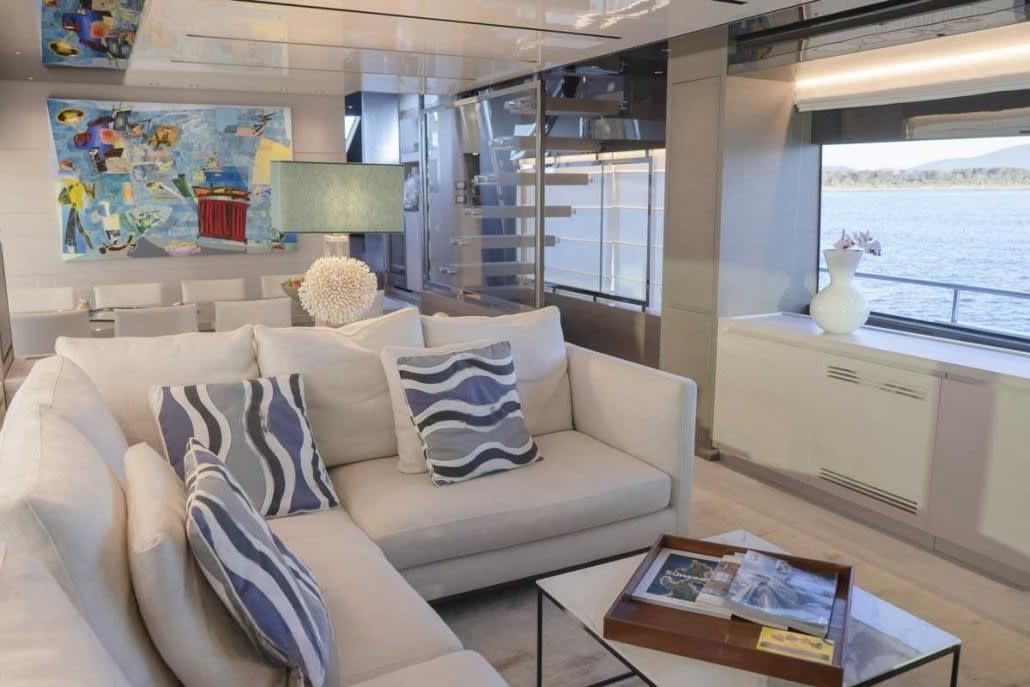 Onboard EM3, time flows to the rhythm of your desires. Bask in the comfort of her thoughtfully designed spaces, where the gentle hum of the sea accompanies your every moment. Whether you’re catching up on the latest news with high-speed Wi-Fi or savoring a gourmet meal prepared in the galley, each experience is curated to delight. Her advanced air conditioning ensures a perfect climate, making every day as refreshing as the last. Stabilizers, both at anchor and underway, provide an unwavering serenity, allowing you to truly unwind.