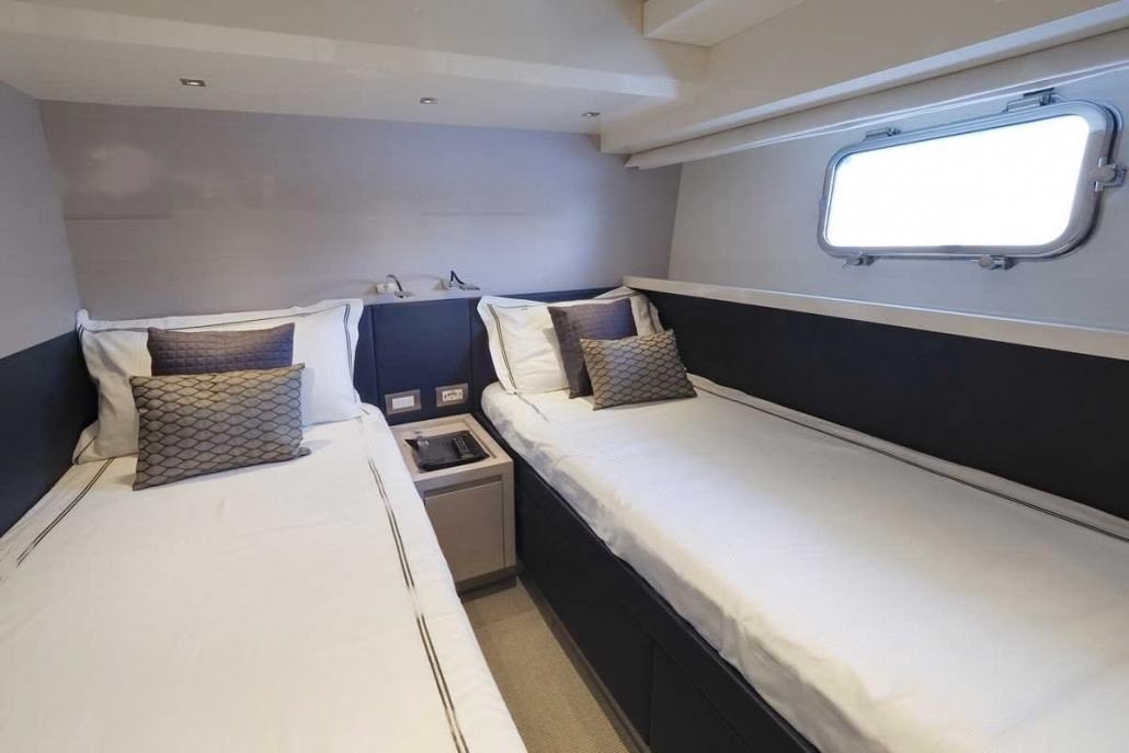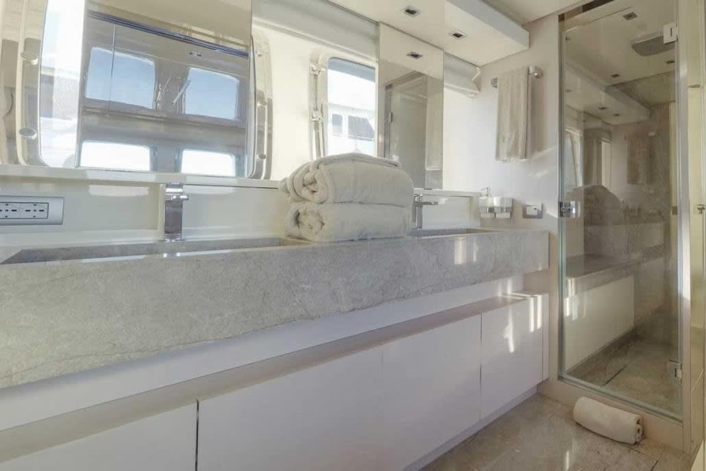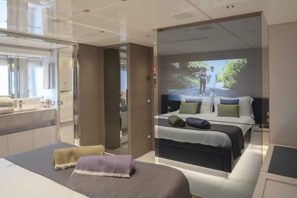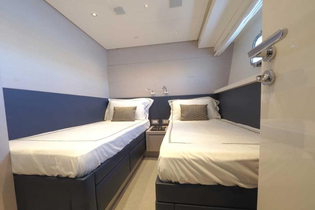 EM3 offers a harmonious blend of privacy and indulgence across her four exquisite cabins. Accommodating up to eight guests, she features a master suite, a VIP cabin, and two twin cabins, each a haven of refined comfort. Wake up to the soft embrace of luxury linens, with sunlight filtering through elegant drapes, and step out onto the deck to greet the day. Every detail of the accommodations has been crafted to create a serene and inviting atmosphere, ensuring restful nights and rejuvenating mornings.