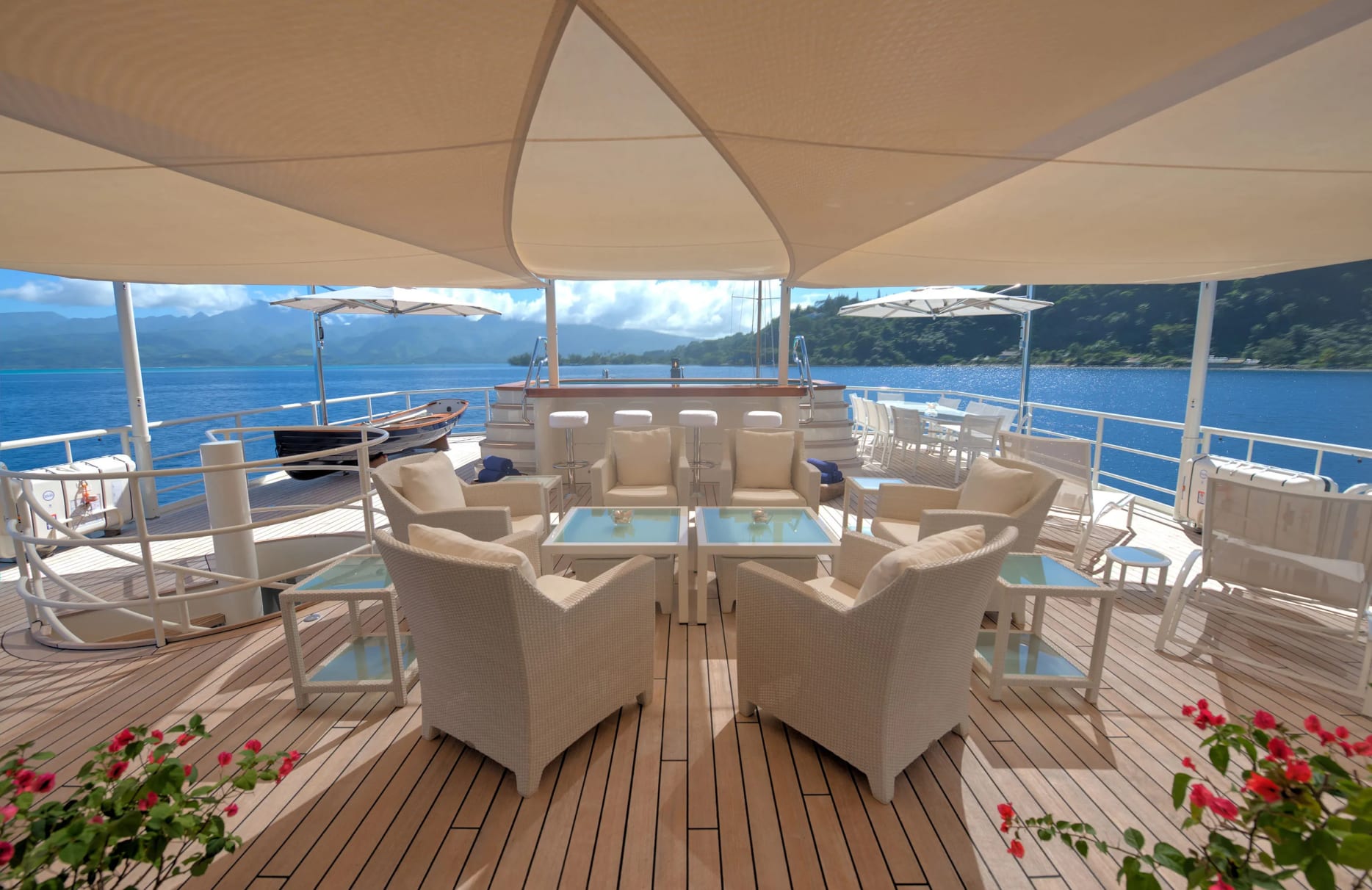 Life aboard Emerald is an experience in refined relaxation and leisure. With Wi-Fi connectivity, you can effortlessly share your Mediterranean adventure with the world, or simply bask in the tranquility that comes with disconnecting. The yacht’s air conditioning ensures a perfect climate, allowing you to unwind comfortably in any weather. At-anchor stabilizers enhance your comfort, transforming each evening into a serene retreat as you gather with loved ones in the inviting social spaces. Whether enjoying a quiet evening under the stars or lively conversations in the dining salon, Emerald’s thoughtful design caters to every mood and occasion.