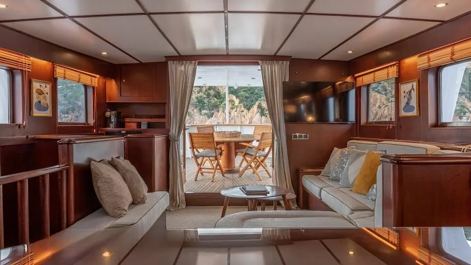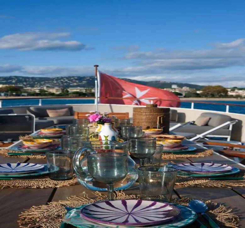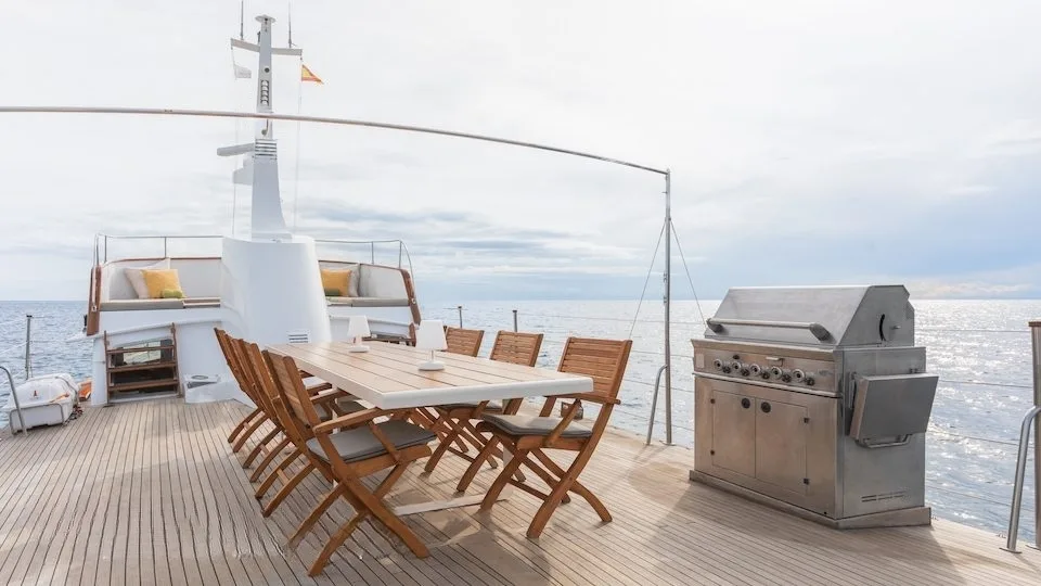 Onboard Fairmile, every moment is designed for indulgence and relaxation. As you enjoy the gentle sea breeze from the sundeck, the inviting aroma of a barbecue wafts through the air, promising delightful evenings under the stars. Inside, the yacht offers seamless connectivity with Wi-Fi, allowing you to stay connected at your leisure. The climate-controlled interiors ensure comfort in all seasons, making every space on the yacht a haven of tranquility. Whether you’re savoring a meal with family or enjoying an evening of entertainment, Fairmile’s amenities cater to your every desire.