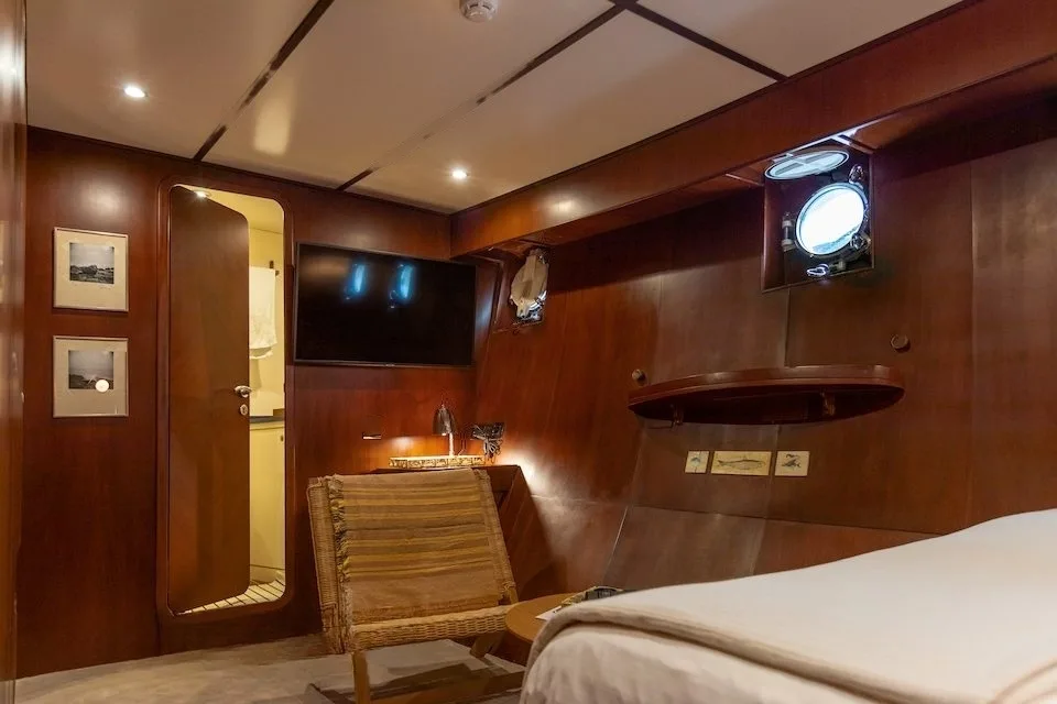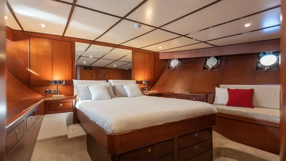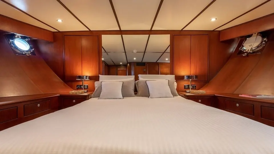 Fairmile welcomes up to six guests into her embrace, offering three beautifully appointed suites that promise restful slumber and serene mornings. Each cabin is a sanctuary, where the gentle lull of the sea lulls you to sleep and the sunrise gently nudges you awake. Thoughtfully designed, these accommodations ensure privacy and comfort, allowing you to unwind and recharge in style. The experience of waking up aboard Fairmile is unparalleled, with the promise of a new day of adventure and discovery just beyond your window.