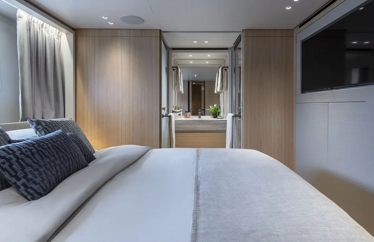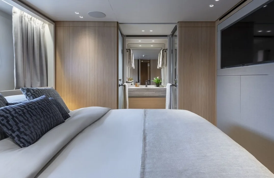 Retreat to Fatsa’s five spacious cabins, offering a sanctuary for up to 11 guests. Each room is a testament to refined elegance, where waking up to the gentle rock of the sea is a daily luxury. The master suite, VIP, double, and twin cabins are thoughtfully designed with a blend of king, queen, and single beds, ensuring a restful night’s sleep after a day of exploration. Here, personal space becomes a haven, a place to rejuvenate in preparation for another day of Mediterranean discovery.