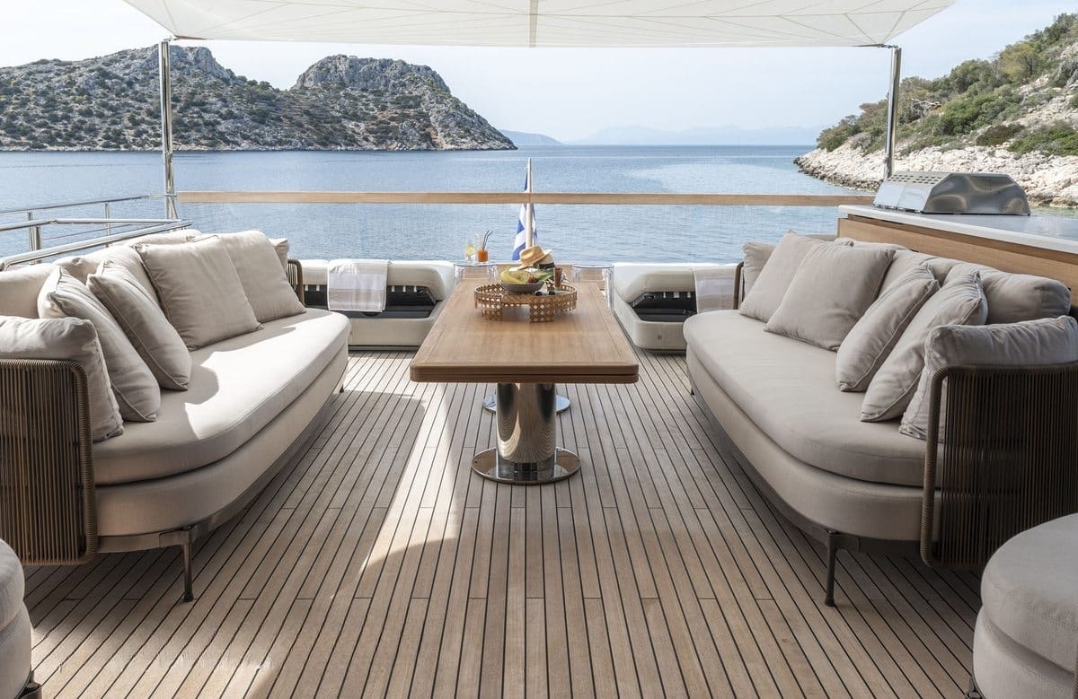Aboard Fatsa, each moment is designed for your ultimate enjoyment. The sun deck beckons with plush sunpads, perfect for soaking up the sun’s warmth, while an exterior bar provides refreshing beverages crafted to your liking. Transition seamlessly from the azure waters to the yacht’s inviting spaces via the swimming platform, and refresh under the outdoor shower. As the day cools, gather on the foredeck seating with a table, where evenings transform into cherished memories under the stars, seamlessly blending the day’s adventures with the night’s tranquility.