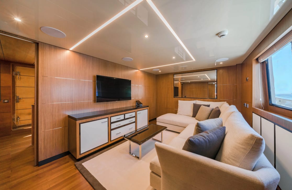 Onboard Fiorente, indulgence meets tranquility in spaces designed to soothe and inspire. The spacious decks elegantly blend indoor and outdoor living, offering an idyllic backdrop for both intimate gatherings and grand celebrations. With Wi-Fi to keep you connected and stabilizers ensuring a smooth passage, you can enjoy each moment without a care in the world. As the day fades, the allure of satellite TV adds a touch of home, bringing familiar comforts to your ocean retreat. Every detail aboard is curated to enhance your experience, from the gentle sea breeze to the refined interiors.
