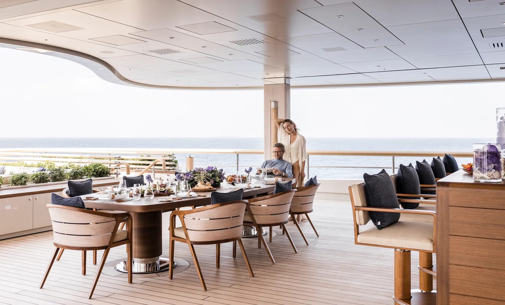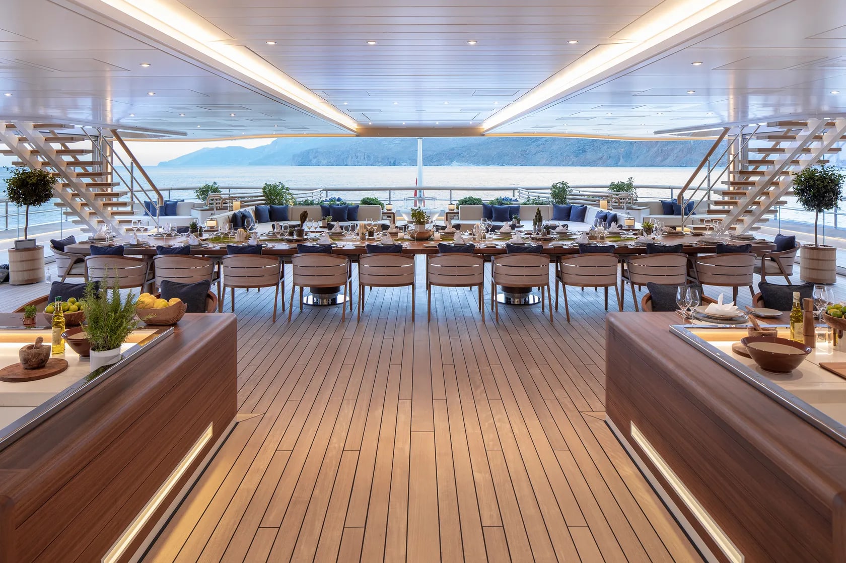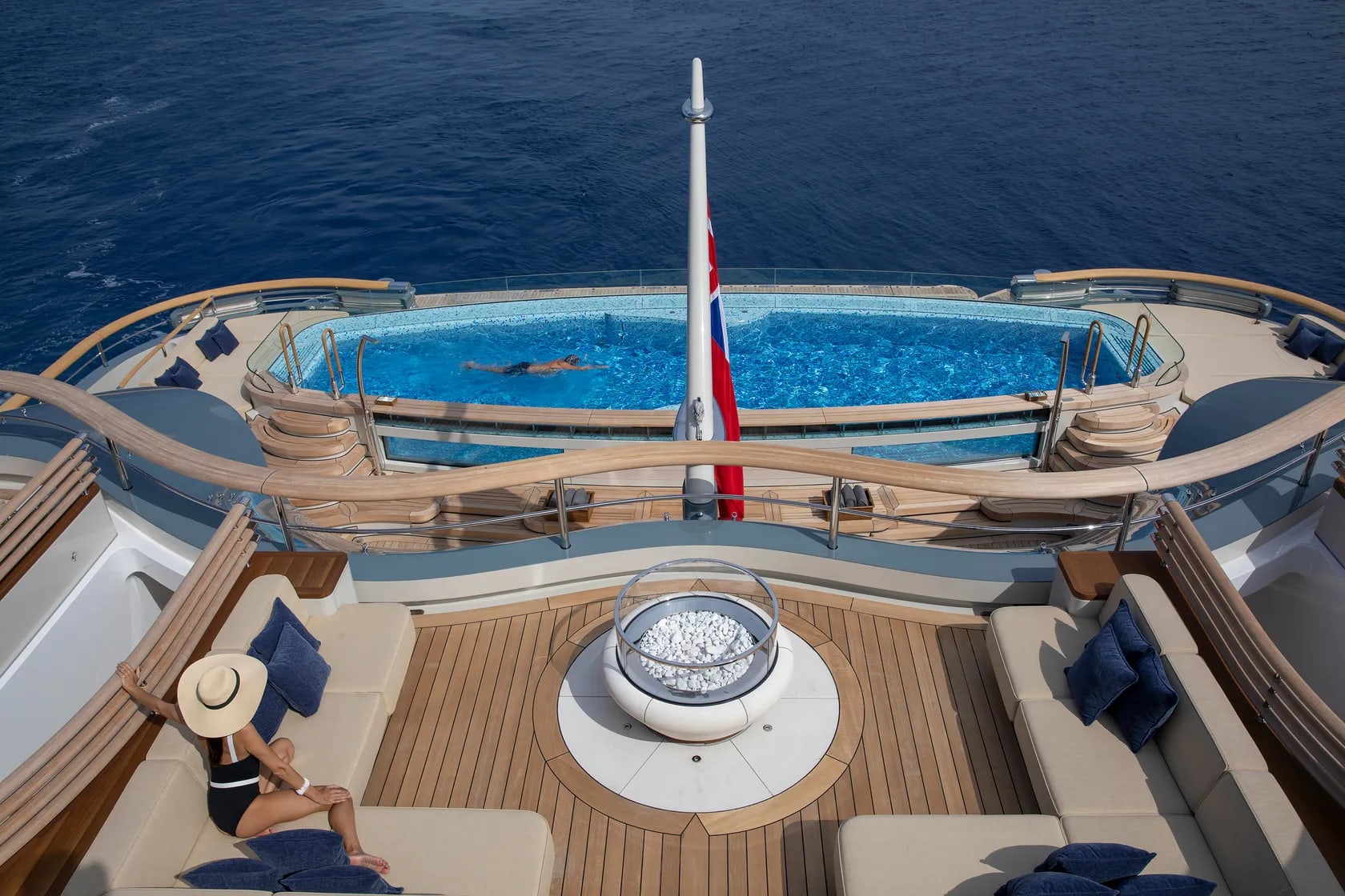 Every corner of Flying Fox is designed to cater to your every whim, offering an unparalleled onboard experience. Start your day with a rejuvenating session in the state-of-the-art gym, followed by a dip in the inviting swimming pool. As the afternoon sunlight dances on the waves, unwind in the beach club, where the boundary between indoor and outdoor living fades away. Indulge in the serenity of the onboard spa, complete with a massage room, sauna, and steam room, ensuring your relaxation is uninterrupted. Evenings aboard are equally captivating, whether enjoying a cinematic experience in the movie theatre or socializing with fellow guests around the grand fireplace, the ambiance is always just right.