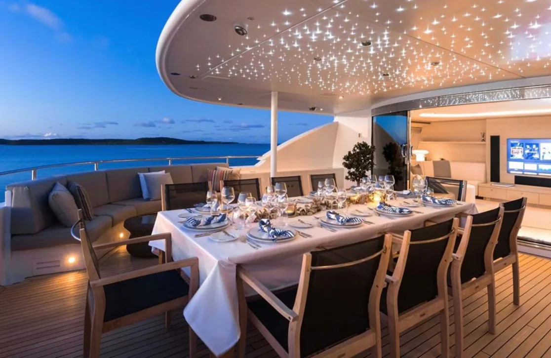 Onboard G3, every detail is crafted to enhance your experience. Imagine evenings under the stars in the outdoor cinema, or sun-drenched afternoons lounging on the sun deck or in the beach club. The deck jacuzzi offers a serene escape, while the shared space gym invites you to maintain your wellness routine surrounded by breathtaking views. Throughout your journey, stay effortlessly connected with high-speed Wi-Fi, ensuring that you can share your adventures in real-time with loved ones. The attentive crew is ever-present, subtly orchestrating your experience to ensure each moment aboard is nothing short of perfection.