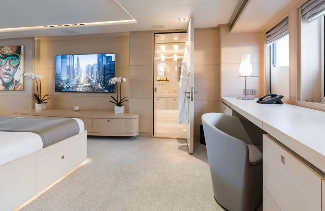 G3 accommodates up to 12 guests across five exquisitely designed cabins, each offering a sanctuary of comfort and style. The master suite provides a tranquil retreat, while the VIP and double cabins ensure every guest enjoys a restful night’s sleep. Versatile configurations in two cabins allow for either twin or double arrangements, adapting to your needs with ease. As dawn breaks over the horizon, awaken to the gentle sway of the ocean and the promise of another day filled with discovery and relaxation.