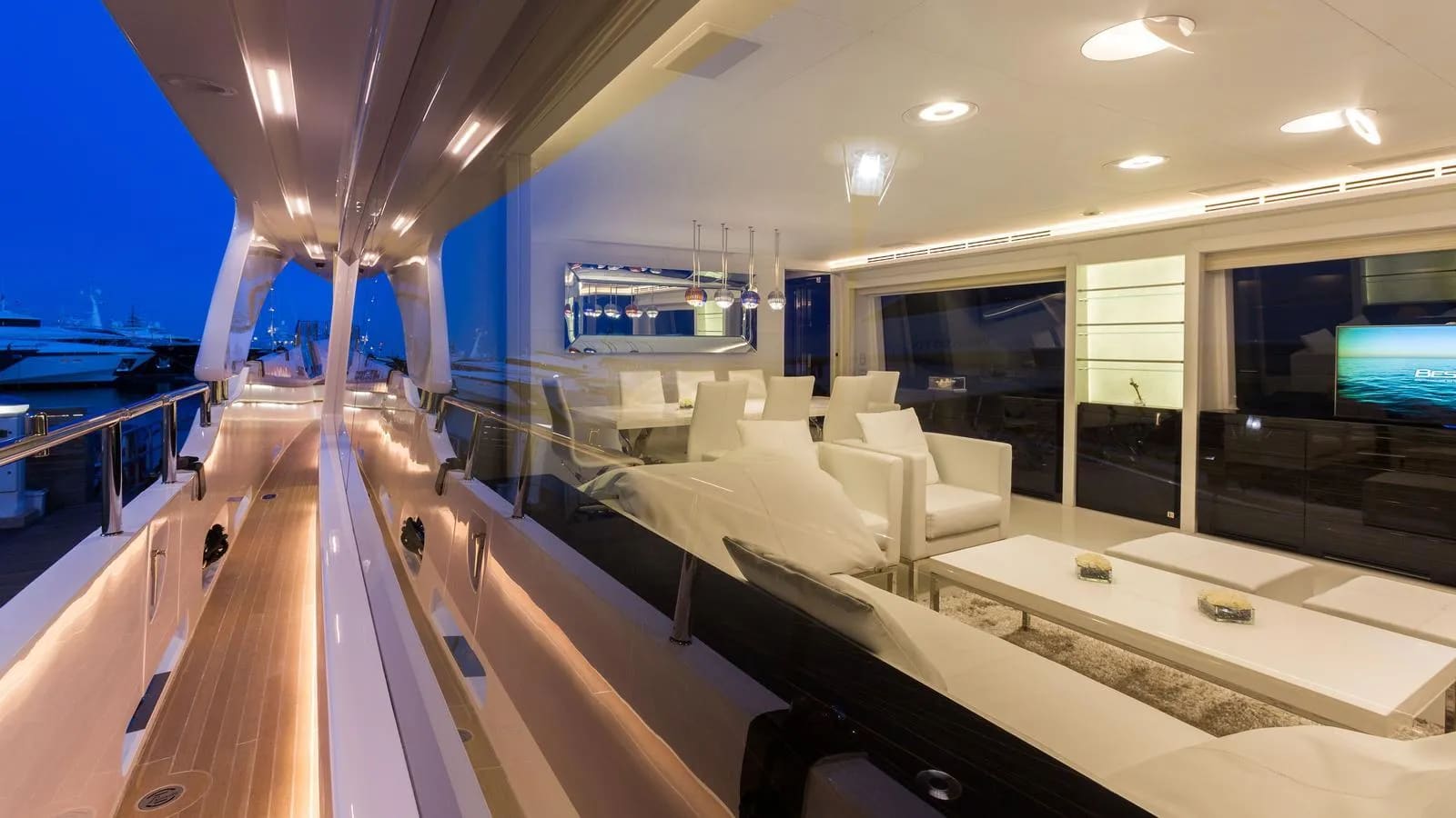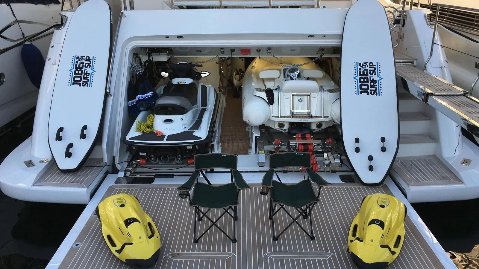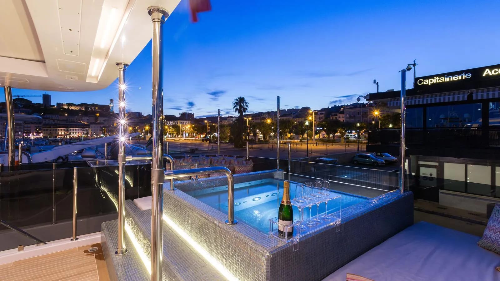 Onboard Gala, every moment is an invitation to indulge in refined relaxation. Picture yourself sinking into the bubbling warmth of the deck jacuzzi, surrounded by panoramic ocean views. Stay effortlessly connected with advanced satellite communications and high-speed Wi-Fi while the cooling embrace of air conditioning provides respite from the midday sun. As evening descends, gather in the elegant salon, where the latest video on-demand entertainment awaits, or simply unwind on the sunpads, letting the gentle sway of the yacht lull you into tranquility.